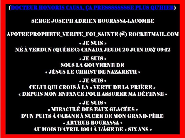 SERGE JOSEPH ADRIEN BOURASSA-LACOMBE « LE seul ET unique » « sauveur-LIBÉRATEUR du christ » « POUR CHRIST ; AVEC CHRIST ; EN CHRIST ; PAR CHRIST » « AMEN!... AINSI SOIT-IL!... ET ALLÉLUIA!... » LUNDI 24 JUIN 2013