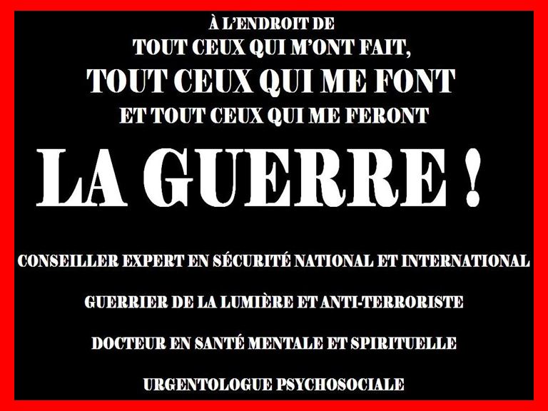 QUI RESPECTE » MAIS TOUS CES ARTICLES DU CODE CRIMINEL ONT ÉTÉ TRANSGRESSÉ À MON ENDROIT: TERRORISmE ; PARJURE ; FABRICATION DE PREUVE ; INFRACTIONS RELATIVES AUX AFFIDAVITS ; ENTRAVE À LA JUSTICE ; MÉFAIT PUBLIC ; COMPOSITION AVEC UN ACTE CRIMINEL ; ACCEPTATION VÉNALE D’UNE RÉCOMPENSE POUR LE RECOUVREMENT D’EFFETS ; TENTATIVE DE MEURTRE ; HARCÈLEMENT CRIMINEL ; PROFÉRER DES MENACES ; VOIES DE FAIT ; VOIES DE FAIT GRAVES ; TORTURE ; séquestration ; PUNITION DE LA TENTATIVE ET DE LA COMPLICITÉ ; CONSEILLER UNE INFRACTION QUI N’EST PAS COMMISE ; COMPLOT... ÇA PRENDRA PLUSIEURS mandatS d'arrestatioNS ET PLUSIEURS CAISSES DE MENOTTES SANS AUCUN DOUTE.