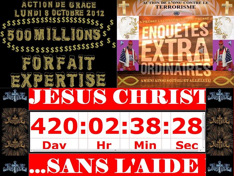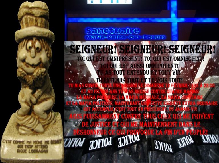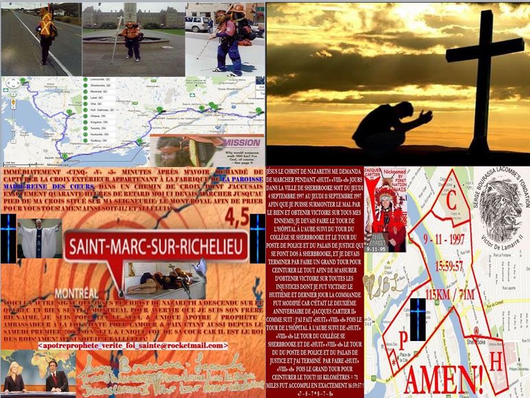 opération! SAVEZ-VOUS MADAME LA PREMIÈRE MINISTRE QUE CE HUIS CLOS LE CHRIST LE VOULAIT POUR LA JOURNÉE DE LA FEMME LE VENDREDI 8 MARS 2013 ET LE 20 JUIN 2013 JOURNÉE DE MON 56IÈME (5 + 6 = 11) ANNIVERSAIRE DE NAISSANCE CE HUIS CLOS IL L’EXIGEAIT DEPUIS LE 8 JUIN 2013 DÉJÀ ET NE L’AYANT PAS EU IL A EXPRIMÉ SA SOUVERAINETÉ EN M’OFFRANT DES DIZAINES DE MILLIONS DE DOLLARS DE FEUX D’ARTIFICES ET EN PRENANT LA VIE DE DEUX MÈRES DE FAMILLE ET LE 25 JUIN 2013 NOTRE SEIGNEUR PROPHÉTISE PAR MA BOUCHE DEVANT LES DEUX POLICIÈRES DU POSTE DE QUARTIER PDQ 48 EN DISANT CECI : «MON GRAND FRÈRE JÉSUS LE CHRIST DE NAZARETH AINSI QUE MOI-MÊME ON VEUT QUE VOUS RASSURIEZ NOTRE PREMIÈRE MINISTRE QUE NOUS VOULONS QUELLE FASSE UN BEAU VOYAGE AU MEXIQUE ET ELLE VA EN FAIRE UN BEAU ET LE SEIGNEUR AURAIT PU PARLER DE L’OPPORTUNITÉ DE PARLER MAIS IL A PLUTÔT DIT À TRAVERS MA BOUCHE: «SI ELLE A LA CHANCE» LORSQU’ELLE SERA LÀ-BAS DE PARLER DES DROITS DE LA PERSONNES ELLE DOIT EN PARLER CAR C’EST TRÈS IMPORTANT QU’ELLE EN PARLE. ET DÈS SON RETOUR ELLE DEVRA S’EMPRESSER DE S’OCCUPER DES DROITS DE MA PERSONNE À MOI, À MOI ALORS QUE JE PORTAIS MA MAIN DROITE SUR MON CŒUR CROYANT QUE J’ÉTAIS ASSEZ DÉMONSTRATIF POUR CONVAINCRE. MON GRAND FRÈRE ME DIT DE VOUS DIRE DE LUI DIRE QUE SI ELLE NE LE FAIT PAS ELLE VA SE FAIRE CHAUFFER LE CUL PAR LUI! ÇA C'ÉTAIT DIT AU SENS FIGURÉ C'EST BIEN CERTAIN!» «ONZE» JOURS PLUS TARD SANS LE HUIS CLOS TANT EXIGÉ PAR LUI, NOTRE SEIGNEUR À PERMI 50 MORTS PENDANT DEUX SEMAINES SOIT UN MORT PAR JOUR DE DÉTENTION ENCORE ILLÉGAL DANS UNE AILE PSYCHIATRIQUE DE MON QUARTIER, DÉTENTION ILLÉGAL CAR OBTENU PAR LA FRAUDE. NOUS SOMMES TOUS FORCER DE CONSTATER QU’IL YA EU «47 MORTS À LAC MÉGANTIC = 4 + 7 SERA TOUJOURS ÉGAL À 11» EN MÉMOIRE DE CETTE TRAGÉDIE DONT JE SUIS VICTIME VOIRE CETTE «ARRESTATION ILLÉGAL PAR LES MAINS DE LA POLICE DE SHERBROOKE LE SAMEDI 11 FÉVRIER 1995 15:55» VOIRE LE TEMPS QUE MON GRAND FRÈRE A CHOISI «DIX-SEPT» (1 + 7 =8 MON CHIFFRE DE DESTIN ET DE RÉFÉRENCE DEPUIS LE JEUDI 8 JUIN 1995) ANS PLUS TARD LE SOUFFLE DE VIE DE WHITNEY HOUSTON «ENTRAÎNANT UN COÛT DE PLUS DE 8 MILLIARDS DE DOLLARS PLUS UN MILLIARD UNIQUEMENT POUR CE LAC MÉGANTIC.» «UN HUIS CLOS EST MAINTENANT EXIGÉ ENTRE MADAME PAULINE MAROIS + MADAME COLETTE ROY-LAROCHE MAIRESSE DE LAC MÉGANTIC + RAYMOND LAFONTAINE ENTREPRENEUR DE LAC MÉGANTIC AU LAC MÉGANTIC AVEC SERGE J. A. BOURASSA-LACOMBE PRÉSIDENT DE SERGE BOURASSA-LACOMBE FONDATION QUI EST DEVENU VICTOR DELAMARRE II LE JEUDI 8 JUIN 1995 À L’HERMITAGE SAINT-ANTOINE DE PADOUE QUI EST DEVENU LE ROI DE LA PUISSANCE MENTALE 18 ANS PLUS TARD ET QUI EST DEVENU AUSSI LE SAUVEUR LIBÉRATEUR DU CHRIST!... POUR LE CHRIST!... ; PAR LUI!... ; AVEC LUI!... ; ET EN LUI!... AMEN!... AINSI SOIT-IL!... ET ALLÉLUIA!...» SI ET SEULEMENT SI, MADAME ROY-LAROCHE ET MONSIEUR LAFONTAINE VEULENT QUE LE HUIS CLOS SOIT TENU AILLEURS, L’ENDROIT DE CE HUIS CLOS SERA À LEUR CONVENANCE. JE ME SOUVIENS, JE ME SOUVIENS ENCORE ET JE ME SOUVIENDRAI TOUJOURS LORSQUE J’ÉTAIS SERVANT DE MESSE ON ME PARLAIT DES ENFANTS DE FATIMA :