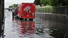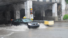 David Santerre (Montreal) The severe thunderstorm that hit Montreal on Tuesday has caused extensive damage in the greater metropolitan region. Flooding across the city have forced the closure of many roads, tunnels and shopping malls as well as the judgment of the orange line between Berri-UQAM and Lionel-Groulx. Nearly 30,000 homes were without electricity across the province. The storms began to rumble in the late afternoon in southern Quebec, particularly over the regions of Montreal and Laval. Environment Canada reports that 45 millimeters of rain fell over eastern Montreal in less than an hour. Winds up to 60 km / h under the storm cells were recorded. When the storm began to break out around 17:00, a tornado warning was even issued. It does not happen. Rainfall resulted in significant accumulations of water on roadways around the city. Between 17:30 and 19:00, Transports Québec has decided to close Highway 720 East (Ville-Marie tunnel) and the University exit (westbound). According to Yves Kirouac, spokesman for Transport Quebec, a dozen cars were trapped there. A handful of other drivers suffered the same fate in a sling exchanger city Saint-Pierre, which converge Highway 20 East and Highway 138. In Montreal, many cars were trapped in the floods, especially in the boroughs Southwest and LaSalle, who seem to have been hardest hit. On Saint Patrick's, near the Light Street, bordering the Lachine Canal, the cars were trapped in waters that have suddenly mounted at their cover. Firefighters had to rescue them. Benoit Dorais, mayor of the borough Southwest, reported that the Atwater tunnel, Carillon and St. Margaret were closed in its field. Firefighters were also asked to Hydro-Quebec to cut the power station at Atwater because of widespread flooding in the area. This station feeds 7,000 subscribers. In all, in Montreal, 15,300 customers are without power. The heavy steel covers many manholes have flown through the air under high water pressure, and a geyser of ten meters was observed on the rue Saint-André in the Plateau Mont-Royal . Metro and shopping centers Several shopping centers downtown have also been flooded, including the Eaton Centre and Place Montreal Trust. «A foot of water has accumulated in five minutes in the store at Metro. We had to quickly evacuate because of electricity, but at first glance, if I calculate quickly I easily $ 50 000 damage over the furniture. Probably more, I'll know when I can go back tomorrow, »says Yves Malenfant, owner of Personal Edge, at the Metro Montreal Trust. In the Southwest, many sewer backups caused the accumulation of a brown water and foul the streets. «There are many streets where there are up to 18 inches of water and strong sewage smell. There are some who have the doors open and out waste from their homes on the street at the corner Workman and Green. It will require an operation to ensure public health. There are also covers of manholes that were moved. It's dangerous,» describes the mayor of this borough, Benoit Dorais. Four libraries and three community centers in his area are also closed due to flooding. A landslide also occurred in the Southwest, leaving on private land a crater four meters in diameter by one to two meters deep. In Notre Dame de Grace, a low brick wall collapsed on the car's owner. Numerous buildings were flooded and evacuated, almost everywhere in town. The Press also noted that a significant amount of water had accumulated inside the station Place d'Armes in Old Montreal. There would be a few inches on the ground floor of the wickets. STM has also announced a decision to 6:15 p.m. service on the Orange Line between the Berri-UQAM and Lionel-Groulx indefinitely. The center received 911 of Montreal, at the height of the storm, so many calls it has exceeded its capacity. Side of Longueuil, the scenario is similar, reports the local police.