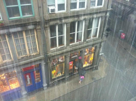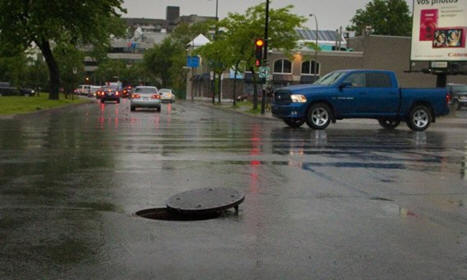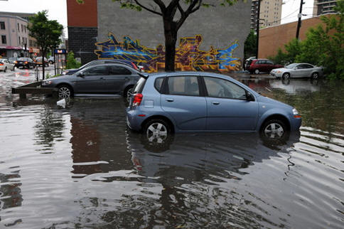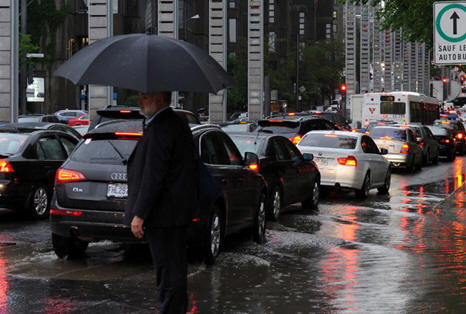 Michel Desbiens / QMI AGENCY A violent storm has disrupted the downtown Montreal, Tuesday, May 29, 2012 late in the day when water flooded several places like in this picture taken at the intersection of St-Jacques and University.