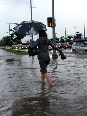Montreal and region have experienced major flooding, following heavy storms, May 29 The violent storms that passed over Montreal have left in their wake rain damage. Within 15 minutes, merchants and citizens of Montreal saw the water rising and damage to accumulate. The evening of Stéphane Garneau, of LaSalle, was nightmarish. It ended the emergency. «Within minutes, there was knee deep in my garage. Then the ceiling started to leak. There was water coming out by the fan. I cut the power and attempted to remove light bulbs, but it was lowered from the ceiling and I'm open hand. My tendon is severed,» he recounted in a telephone interview. «It's horrible. I live in a crescent. The street was flooded completely. When I left for the hospital, everyone was leaving the water in their basements and their garages to the boiler.» The floods also caused much damage on the South Shore of Montreal. Students of the French College in Longueuil, had a scare when the sewers were discharged from the toilet, causing accumulation of water about 20 cm in the basement. «There was quite a commotion fighting to evacuate the children in a safe room» told Lise Millette, mother of two children who attend school. «When I arrived, everyone was excited. Smaller crying because the greatest have made them believe they were going to drown in the water! Moreover, the phone's storage service no longer works because electricity has been cut. That has caused concern among parents.» The water began to flow through the walls and ceiling at Chloé Poirier-Sauvé, an artist of the Plateau Mont-Royal. «About 30 seconds after the rain started to fall was so intense, we started to hear bubbling, then the water started to flow from the wall, ceiling and floor. It's like rain in the room. Smelly, which leads us to believe that there was a sewer backup.» Karina Bertrand, who lives in the Bannantyne, Verdun, has experienced the same situation. «Everything was dry, and in less than two minutes, there were two inches of water on the floor. It was released by the toilet. I heard the water running in the walls. She descended from the apartments above, which had the same thing. ITS makes bubbles in my ceiling. The Bannantyne was filled with water, cars were making waves in traveling there,» says Ms. Bertrand, who lives on the ground floor. «I have more energy and am in the dark for 19h. It's been 10 years since I'm here and I've never seen it. Fortunately, I have not too much damage, I had the time to unplug appliances and set up everything I could.» Several shopping centers of downtown were flooded yesterday, including the Eaton Centre and Place Montreal Trust. Damages have not been evaluated, but everything suggests that traders are likely to make losses significant. «A foot of water has accumulated in five minutes in the store at Metro», told Yves Malenfant, owner of Personal Edge of Place Montreal Trust. «We had to quickly evacuate because of electricity, but at first glance, if I calculate quickly, I easily $ 50 000 in damages, in addition to furniture. Probably more, I'll know when I can go back tomorrow.»