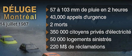 Waterlogged streets, lots of flooded basements, enclosed public places. The violent storm that hit on part of the province has caused many emotions late yesterday afternoon. Sherbrooke to Mont-Tremblant, Mother Nature was acting up. And Montreal is no exception. The torrential rains that fell for nearly 30 minutes of the metropolis caused accumulations ranging from 40 to 70 mm depending on the sector. In comparison, the memorable flood of 14 July 1987 had seen 57 to 103 mm of water fall on Montreal in two hours. The water level rose rapidly through the streets, especially downtown, causing road closures. «It is very uncommon,» surprised the Environment Canada meteorologist André Cantin. The phenomenon is not seen only every five years, approximately, in a given sector. A mass of very hot air above the city had caused the first wave of thunderstorms in the morning . The sunny weather that followed «the heated pot and allowed the development of other storm cells that erupted in the late afternoon,» says Cantin. Backflow The Fire Department of Montreal was overwhelmed. To 21:00, there was always more than 1,000 calls from citizens struggling with sewer backups and flooding on the waiting arms of an intervention. «It's unbelievable,» says Chief Claude Deschuymer. Firefighters were already at home when Toula Drimonis found that the underground parking garage of his apartment building was flooded and the main entrance portico had collapsed under the pressure of the water. «It's a disaster,» says that the content of the presentation is lost. «To lose the things I can replace, it does not bother me too much. But I had books, photographs. It makes me really sad,» she says. In addition to the tornado warnings, Montérégie, which saw 10,200 outages in the morning, was affected by the storm of the afternoon. «At 16 pm, we had managed to fall to 667 homes down, but with the storm of 17:00, it is rendered to 3,500 outages,» said Marie-Helene Devault, spokesman for Hydro-Quebec . Paralysis The subway system in Montreal has also paid the «deluge». The water level in the tunnels connecting the stations Square Victoria, Place d'Armes and Champ de Mars was such that the pumps were no longer providing. The service was stopped on the orange line as long as water is absorbed. At the Place Ville-Marie, who was evacuated, the water came pouring through the ceiling lights in some stores, says an employee. «We have never seen anything like that,» she quips. The storm in brief