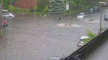 Waterlogged streets, lots of flooded basements, enclosed public places. The violent storm that hit on part of the province has caused many emotions late yesterday afternoon. Sherbrooke to Mont-Tremblant, Mother Nature was acting up. And Montreal is no exception. The torrential rains that fell for nearly 30 minutes of the metropolis caused accumulations ranging from 40 to 70 mm depending on the sector. In comparison, the memorable flood of 14 July 1987 had seen 57 to 103 mm of water fall on Montreal in two hours. The water level rose rapidly through the streets, especially downtown, causing road closures. «It is very uncommon,» surprised the Environment Canada meteorologist André Cantin. The phenomenon is not seen only every five years, approximately, in a given sector. A mass of very hot air above the city had caused the first wave of thunderstorms in the morning. The sunny weather that followed «the heated pot and allowed the development of other storm cells that erupted in the late afternoon,» says Cantin. Backflow The Fire Department of Montreal was overwhelmed. To 21 h, there was always more than 1,000 calls from citizens struggling with sewer backups and flooding on the waiting arms of an intervention. It's amazing,» says Chief Claude Deschuymer. Firefighters were already at home when Toula Drimonis found that the underground parking garage of his apartment building was flooded and the main entrance portico had collapsed under the pressure of the water. «It's a disaster,» says that the content of the presentation is lost. «To lose the things I can replace, it does not bother me too much. But I had books, photographs. It makes me really sad, »she says. In addition to the tornado warnings, Montérégie, which saw 10,200 outages in the morning, was affected by the storm of the afternoon. «At 16:00, we had managed to fall to 667 homes down, but with the storm of 17:00, it is rendered to 3,500 outages,» said Marie-Helene Devault, spokesman for Hydro-Quebec . Paralysis The subway system in Montreal has also paid the «deluge». The water level in the tunnels connecting the stations Square Victoria, Place d'Armes and Champ de Mars was such that the pumps were no longer providing. The service was stopped on the orange line as long as water is absorbed. At the Place Ville-Marie, who was evacuated, the water came pouring through the ceiling lights in some stores, says an employee. «We never saw anything like that,» says Melanie. - In collaboration with QMI Agency Flood of May 29, 2012
