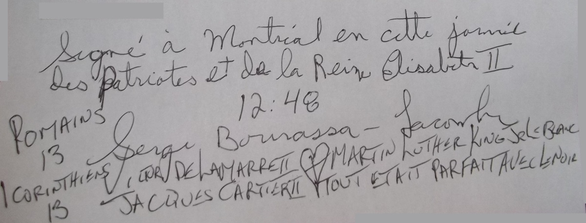 constitution et de nos chartes dont entre autres la suprématie de Dieu et la