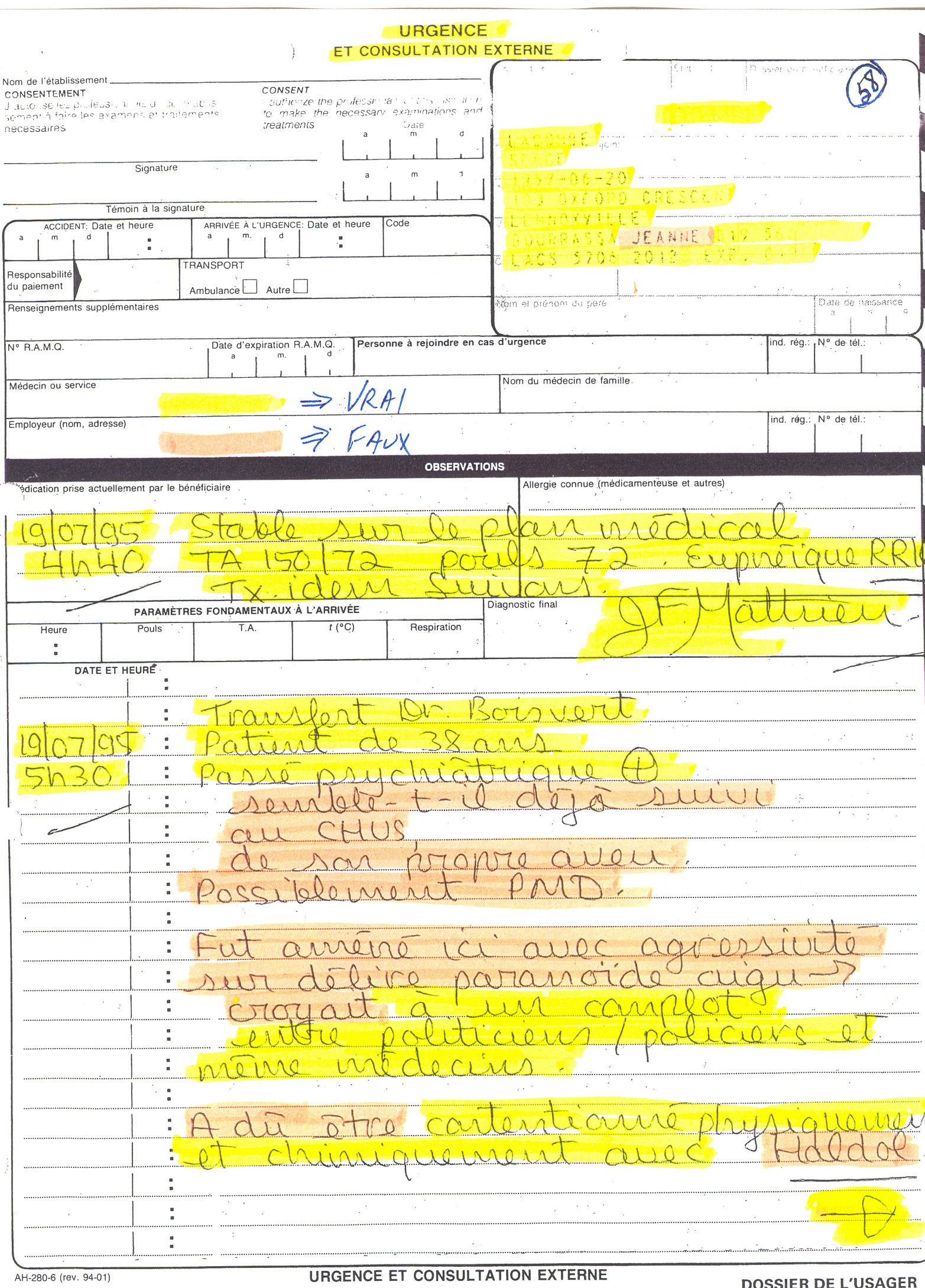well to have arrived at the Hospital of Verdun on July 18, 1995 between laying
