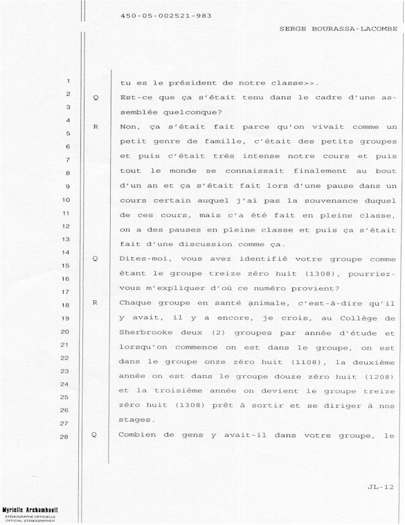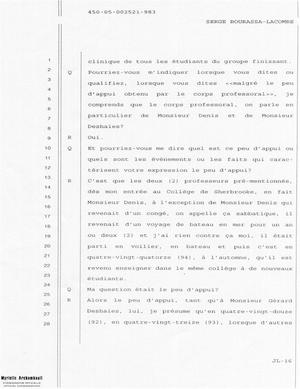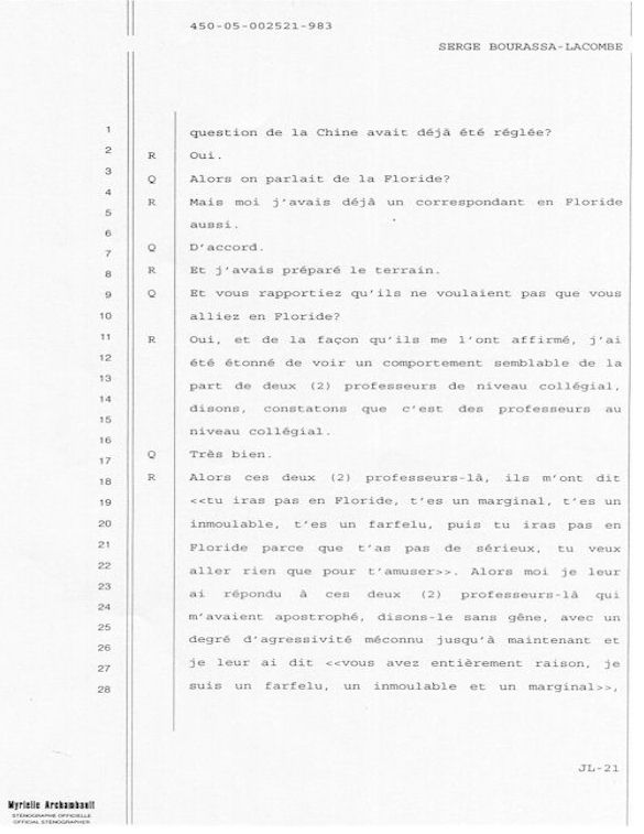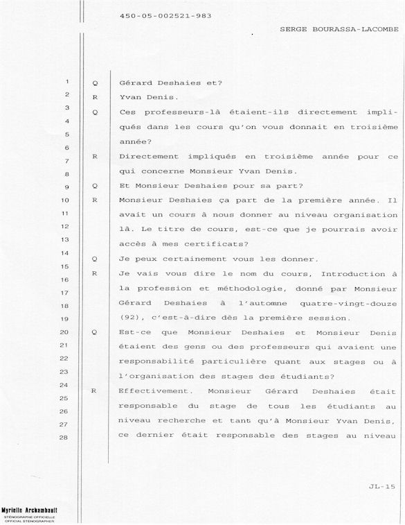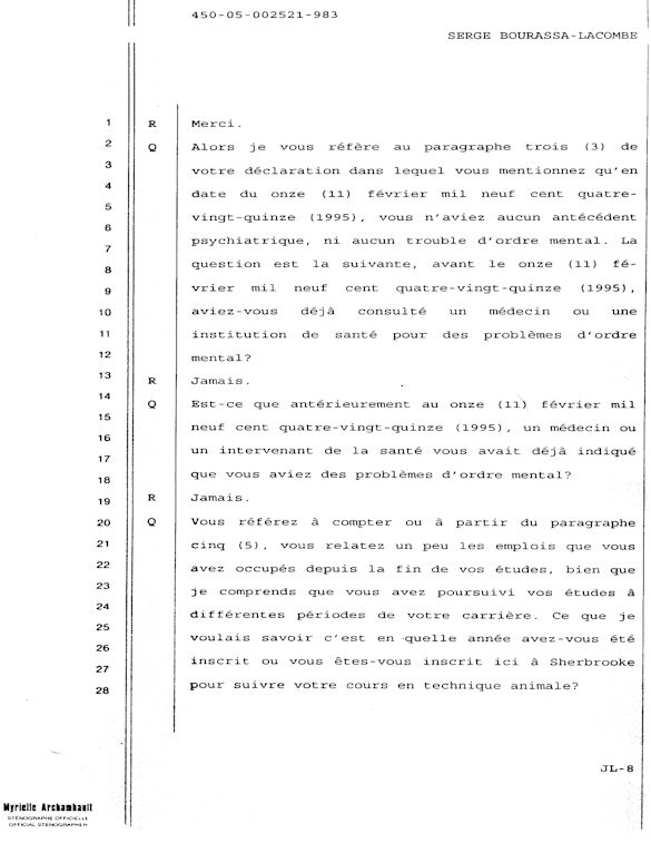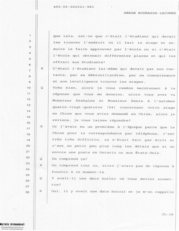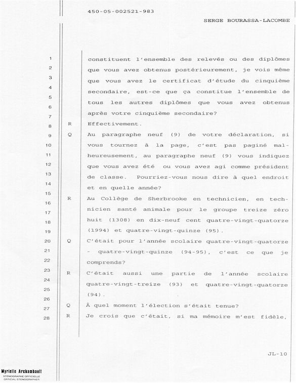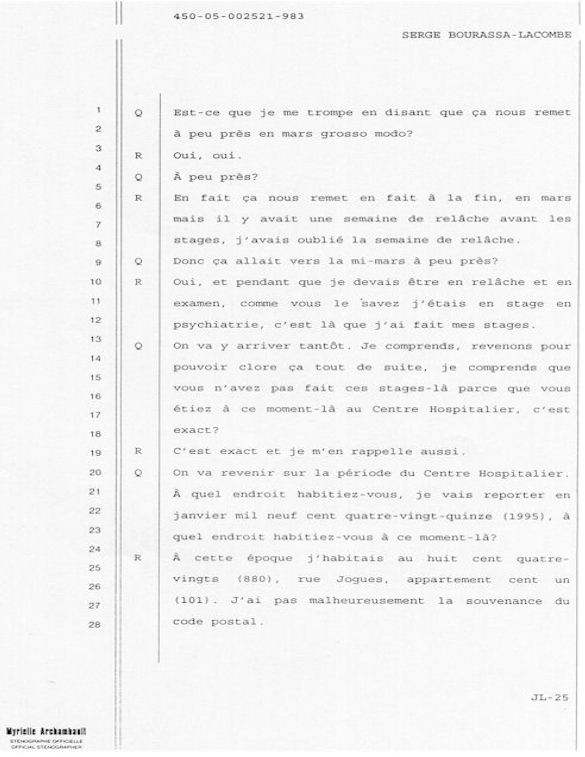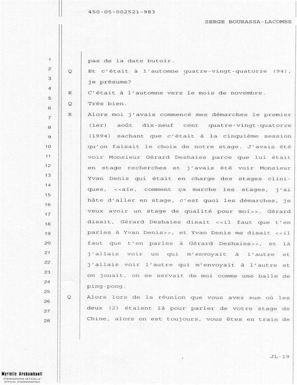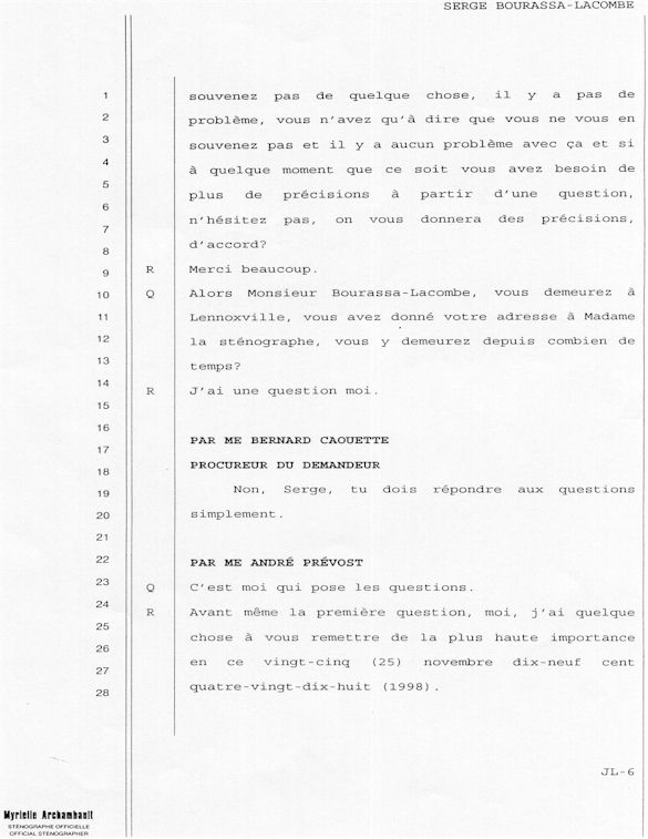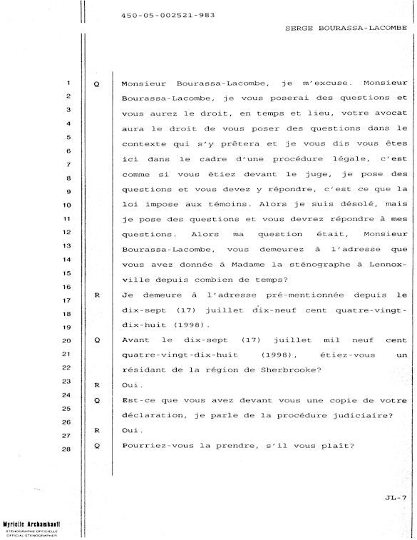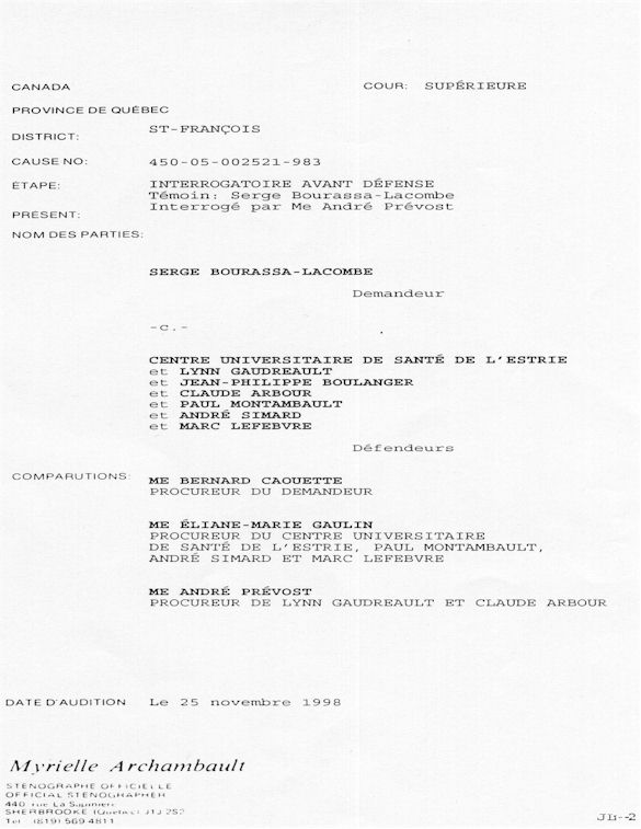 PROVINCE DE QUÉBEC DISTRICT: ST-FRANÇOIS CAUSE NO: 450-05-002521-983 ÉTAPE: INTERROGATOIRE AVANT DÉFENSE