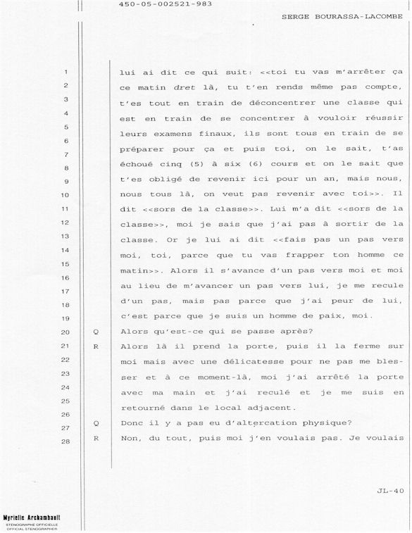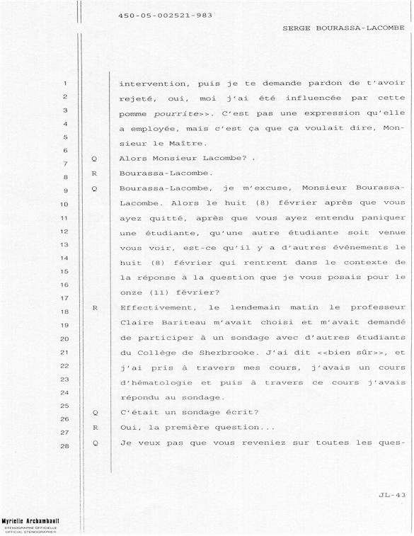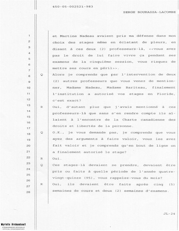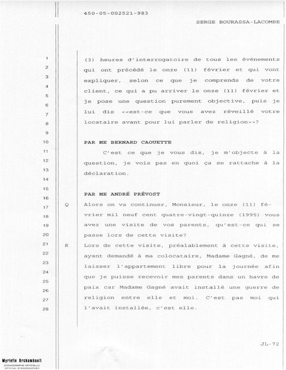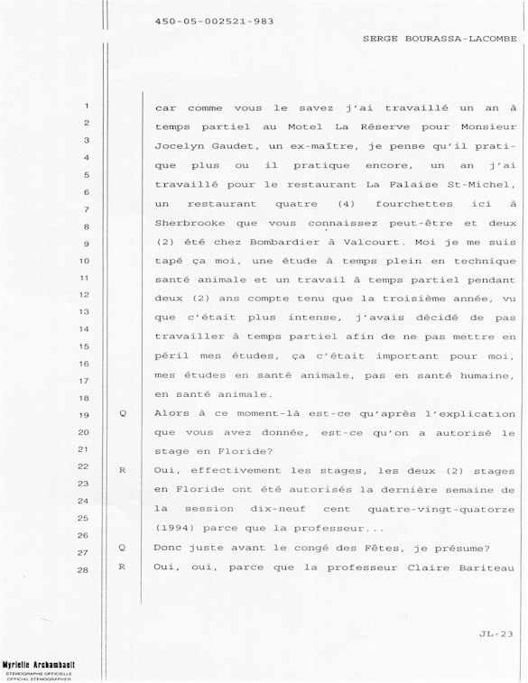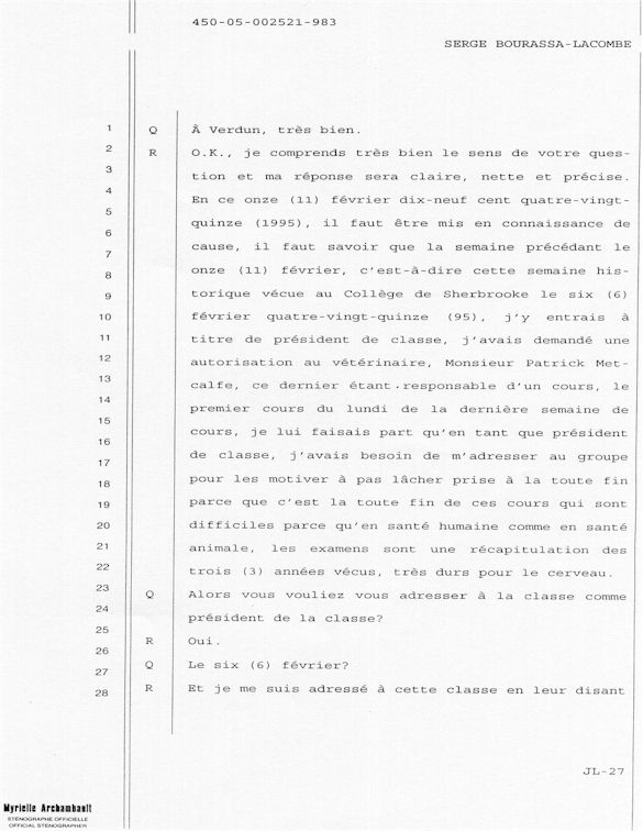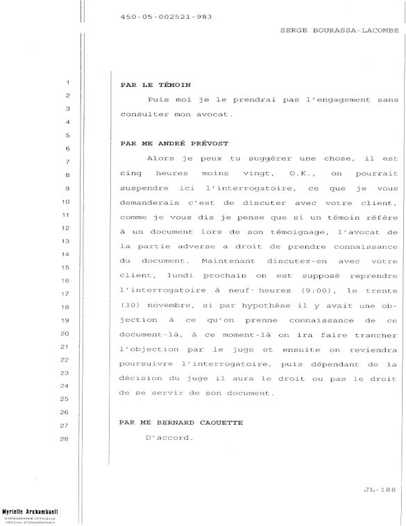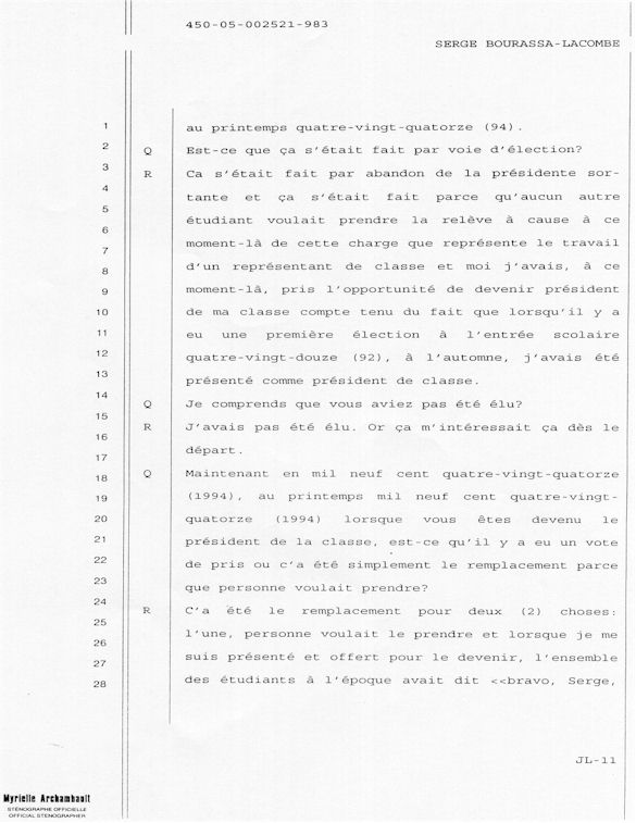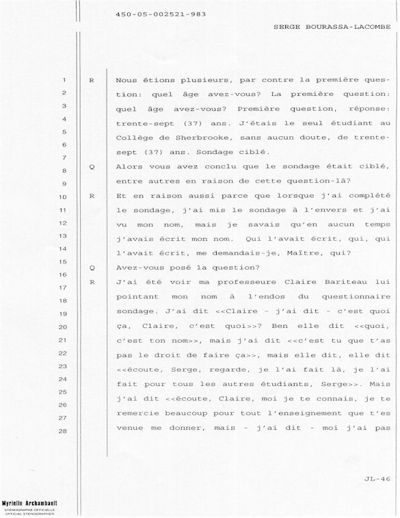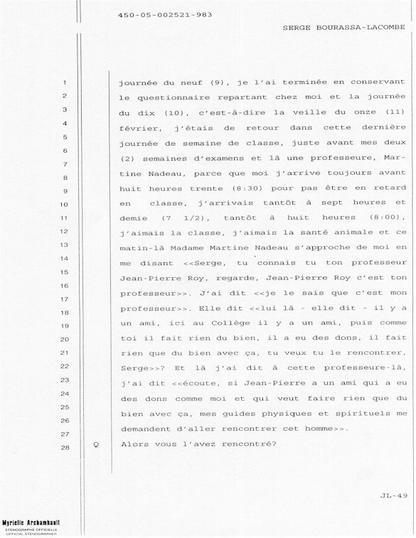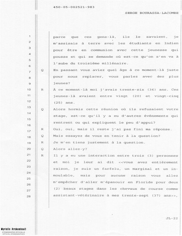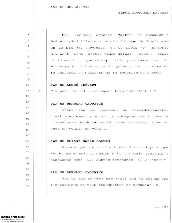PROVINCE DE QUÉBEC DISTRICT: ST-FRANÇOIS CAUSE NO: 450-05-002521-983 ÉTAPE: INTERROGATOIRE AVANT DÉFENSE