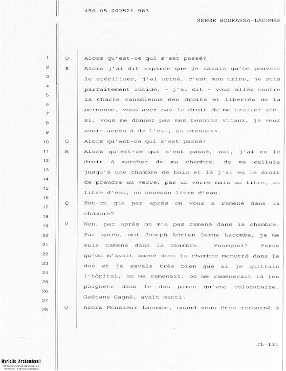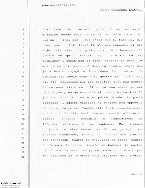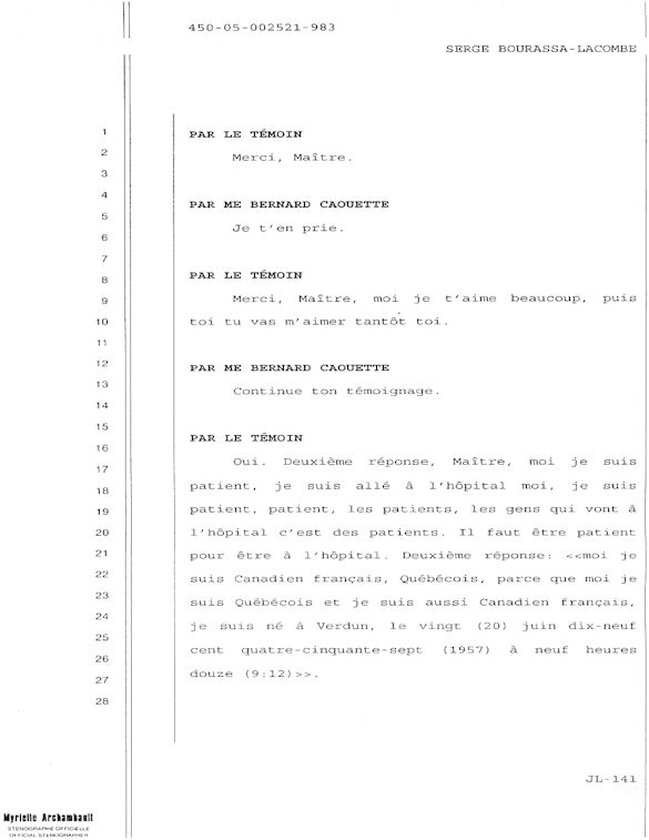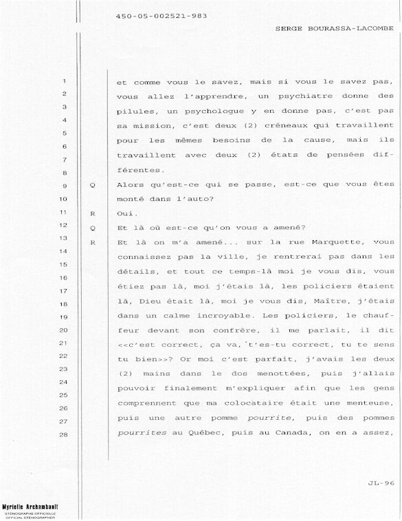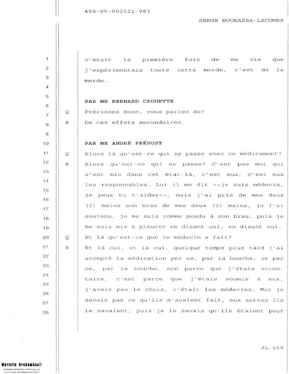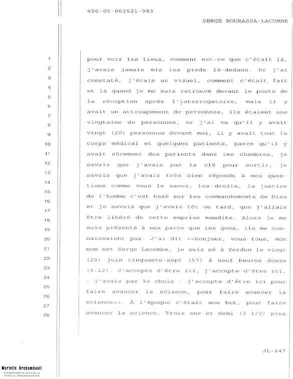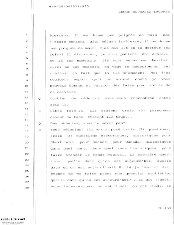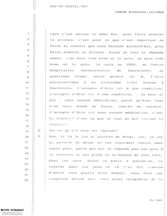 COMUNICADO DE PRENSA DEL MARTES 27 DE JUNIO DE 2000 - LA TRIBUNA DE SHERBROOKE - ESCASEZ DE PSIQUIATRAS AL CHUS - DURANTE LOS 10 ÚLTIMOS MESES, SEIS DE LOS 18 MIEMBROS DEL EQUIPO DE ESPECIALISTAS DEL DEPARTAMENTO DE PSIQUIATRÍA DEL CENTRO HOSPITALARIO UNIVERSITARIO DE SHERBROOKE VOLVIERON A PONER SU DIMISIÓN. - 30 - A SERGE JOSÉ ADRIEN BOURASSA-LACOMBE LE QUISIERA SABER: ¿SE IMPLICABAN EN EL EXPEDIENTE DEL CHUS 398.068? ¿SE ENFRENTARON AL POTENCIAL DE PELIGROSIDAD DEL MEDIO (O INCLUSO MAFIA MÉDICA)? SI ALGÚN EL POSEE INFORMACIÓN QUE PUEDE AYUDARME A OBTENER JUSTICIA ANTE EL CUERPO MÉDICO IMPLICADO EN EL EXPEDIENTE DEL CHUS 398 068. ESTAS REVELACIONES SE APRECIARÁN MUY PARA CONVENCER LOS CULPABLES ARREPENTIRSE E INCLUIR QUE LA VERDAD QUE ES DICHA CELIDONIA EL CUERPO Y CURADA EL ALMA. ENTONCES ES MEJOR PARA ELLOS QUE LA VERDAD ESTÉ REVELADA LO MÁS BIEN POSIBLE, YA QUE JÉSUS LE CHRIST PONDRÁ UN DÍA EN LUZ LO QUE SE OCULTA EN LAS OSCURIDAD, Y QUE MANIFESTARÁ LAS INTENCIONES DE LOS C?URS. ¡ENTONCES CADA UNO RECIBIRÁ DE DIOS LA ALABANZA QUE SE LE DEBERÁ!