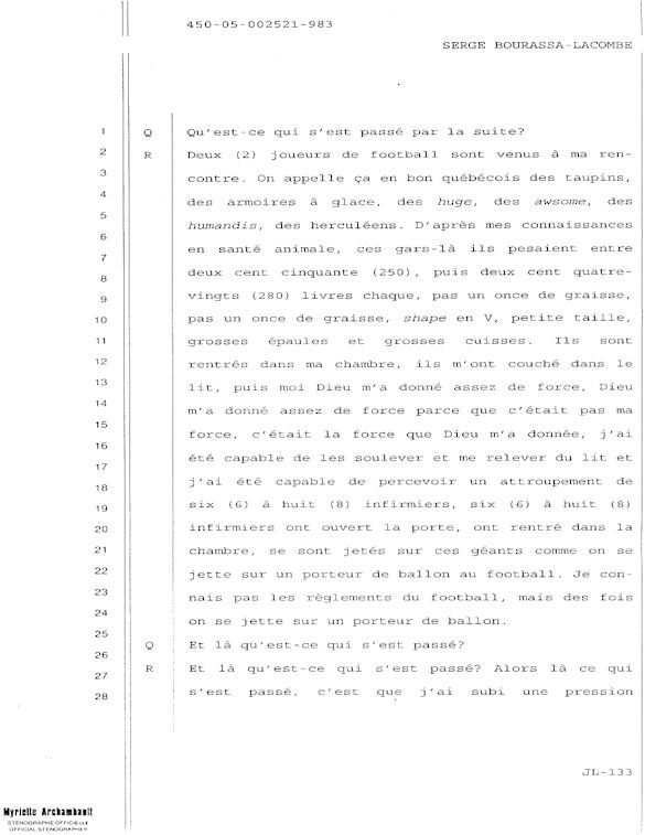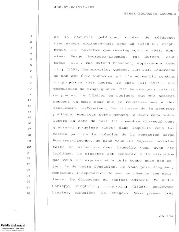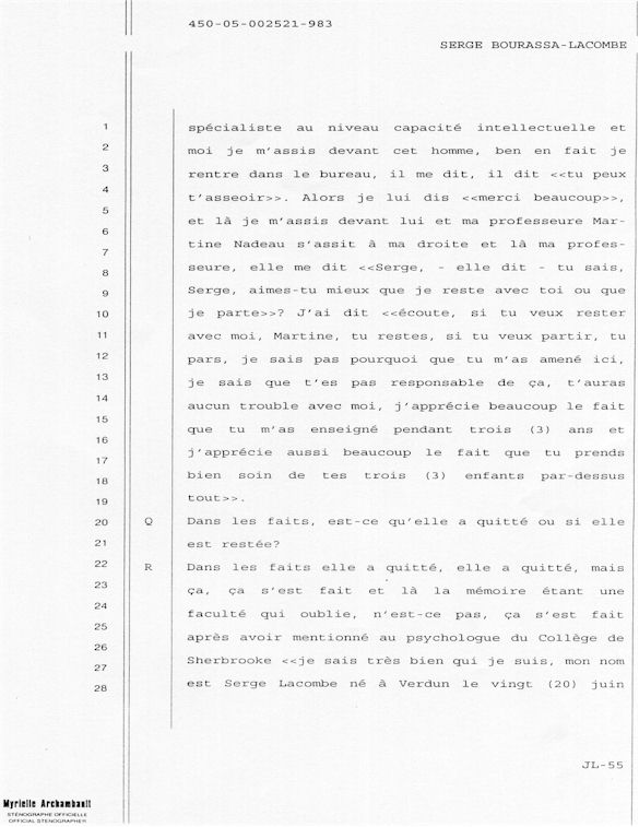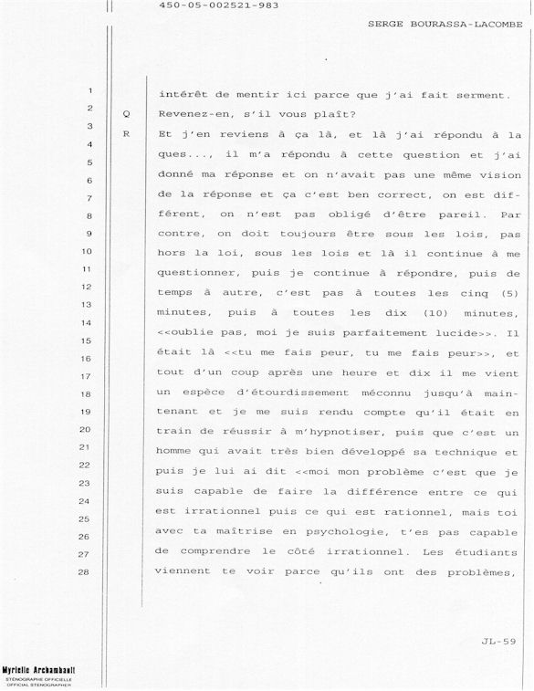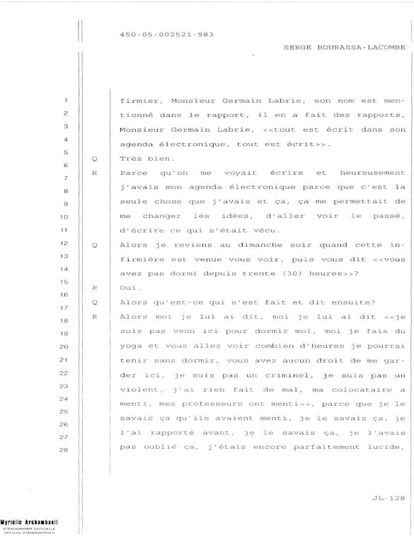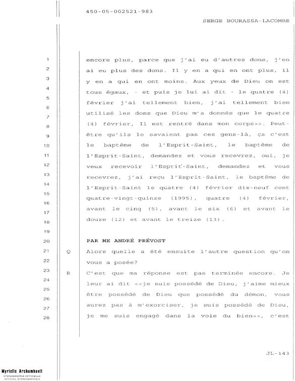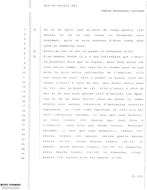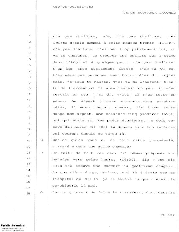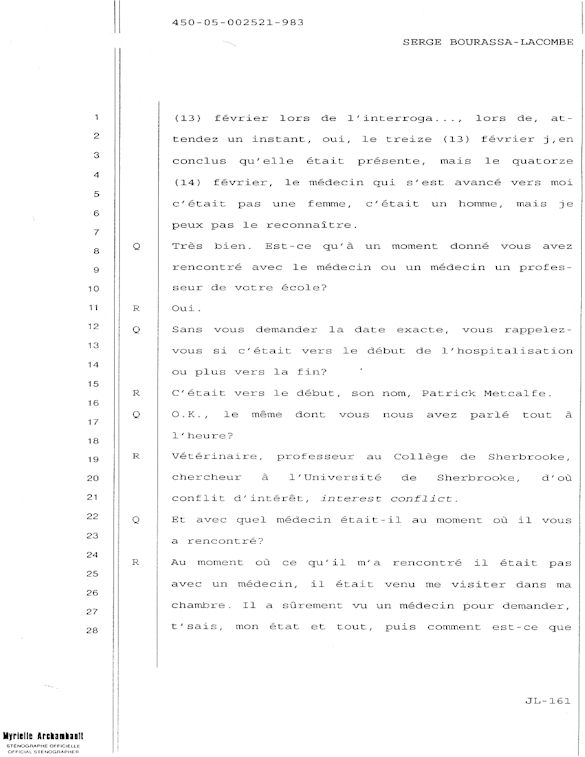 COMUNICADO DE PRENSA DEL MARTES 27 DE JUNIO DE 2000 - LA TRIBUNA DE SHERBROOKE - ESCASEZ DE PSIQUIATRAS AL CHUS - DURANTE LOS 10 ÚLTIMOS MESES, SEIS DE LOS 18 MIEMBROS DEL EQUIPO DE ESPECIALISTAS DEL DEPARTAMENTO DE PSIQUIATRÍA DEL CENTRO HOSPITALARIO UNIVERSITARIO DE SHERBROOKE VOLVIERON A PONER SU DIMISIÓN. - 30 - A SERGE JOSÉ ADRIEN BOURASSA-LACOMBE LE QUISIERA SABER: ¿SE IMPLICABAN EN EL EXPEDIENTE DEL CHUS 398.068? ¿SE ENFRENTARON AL POTENCIAL DE PELIGROSIDAD DEL MEDIO (O INCLUSO MAFIA MÉDICA)? SI ALGÚN EL POSEE INFORMACIÓN QUE PUEDE AYUDARME A OBTENER JUSTICIA ANTE EL CUERPO MÉDICO IMPLICADO EN EL EXPEDIENTE DEL CHUS 398 068. ESTAS REVELACIONES SE APRECIARÁN MUY PARA CONVENCER LOS CULPABLES ARREPENTIRSE E INCLUIR QUE LA VERDAD QUE ES DICHA CELIDONIA EL CUERPO Y CURADA EL ALMA. ENTONCES ES MEJOR PARA ELLOS QUE LA VERDAD ESTÉ REVELADA LO MÁS BIEN POSIBLE, YA QUE JÉSUS LE CHRIST PONDRÁ UN DÍA EN LUZ LO QUE SE OCULTA EN LAS OSCURIDAD, Y QUE MANIFESTARÁ LAS INTENCIONES DE LOS C?URS. ¡ENTONCES CADA UNO RECIBIRÁ DE DIOS LA ALABANZA QUE SE LE DEBERÁ!