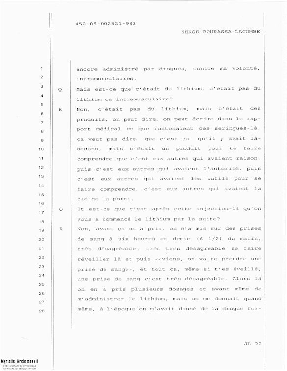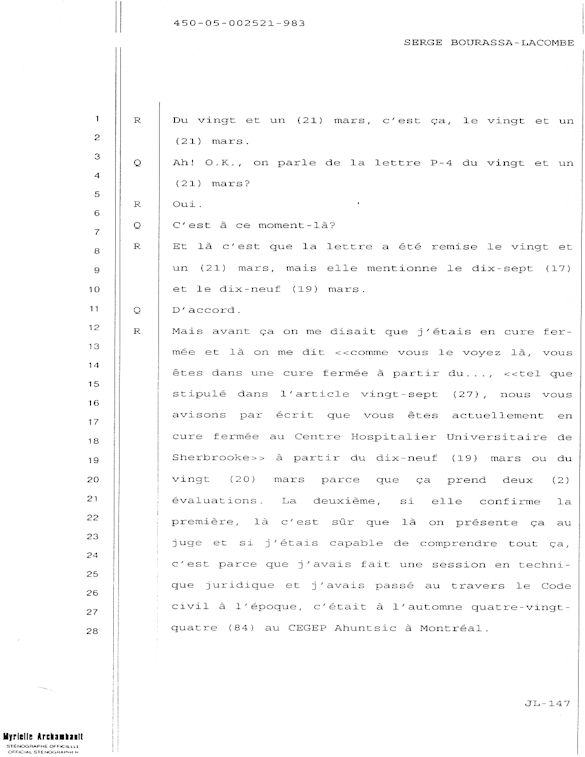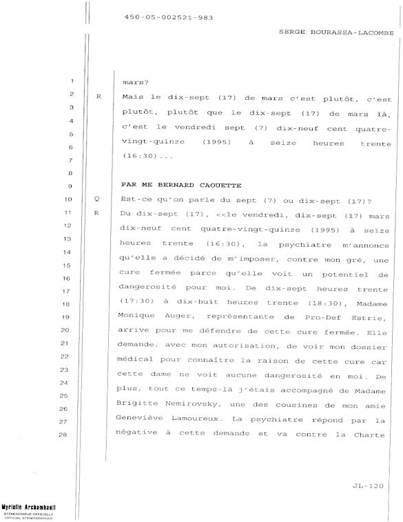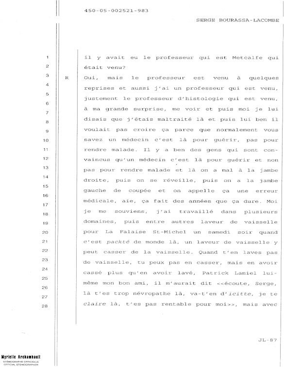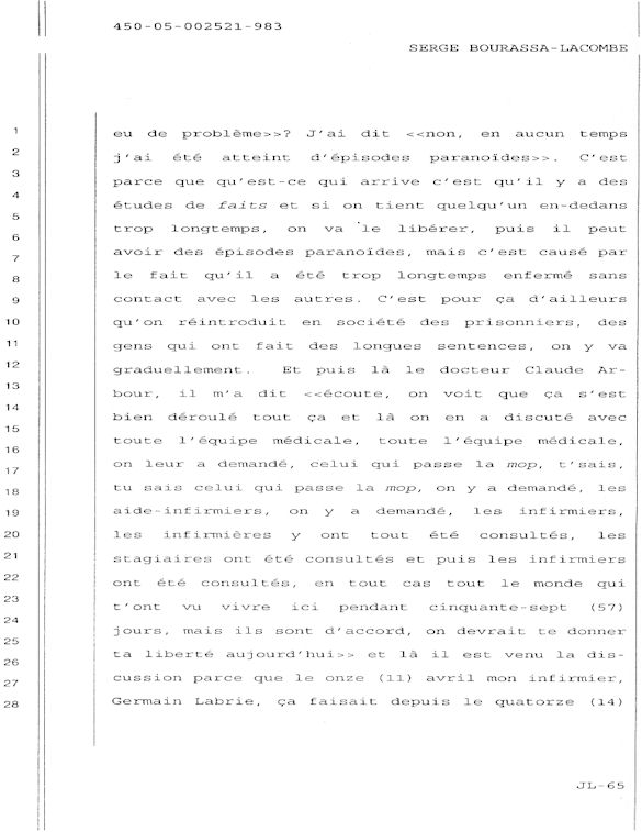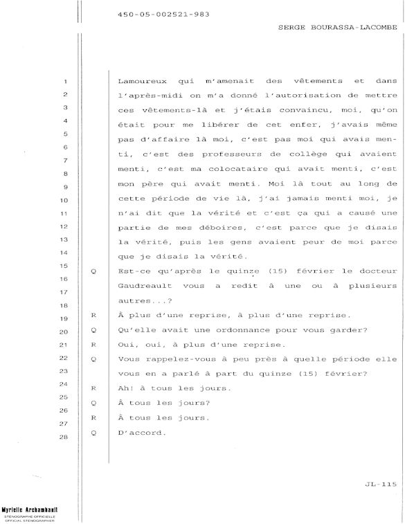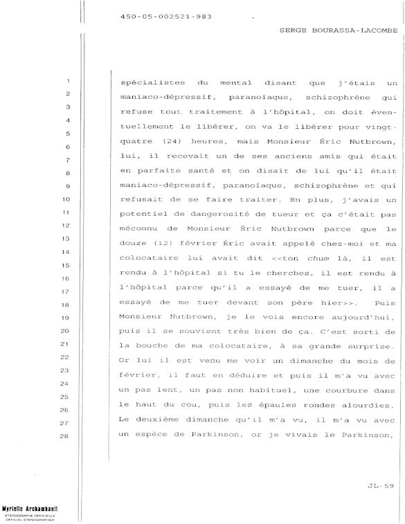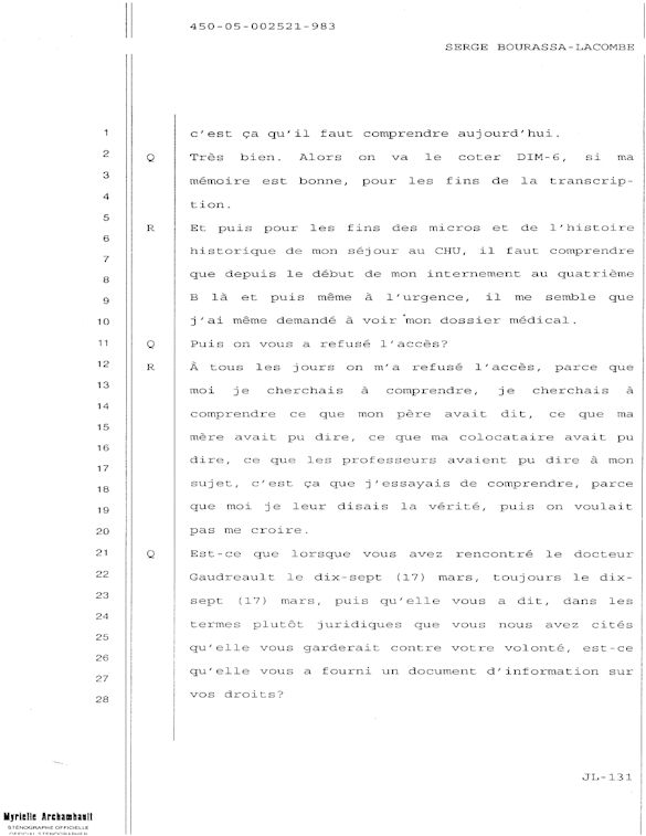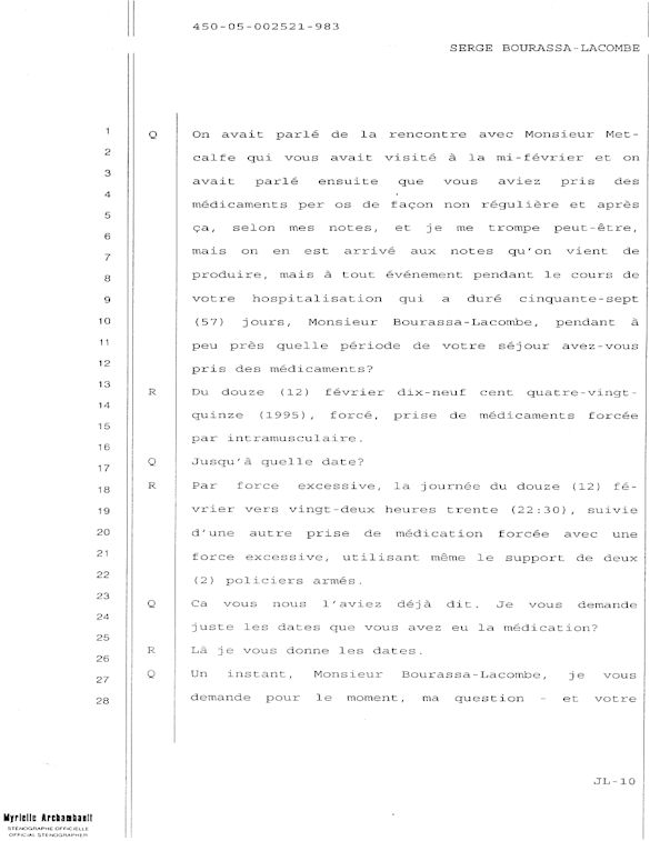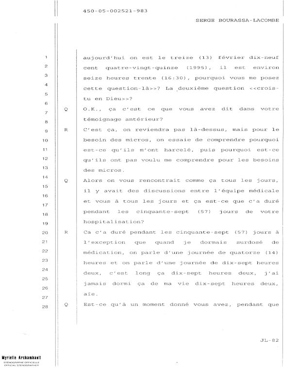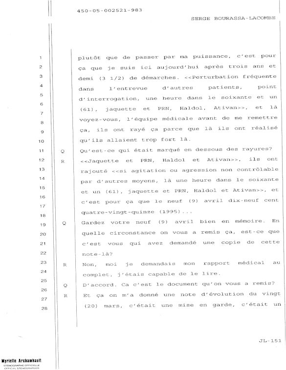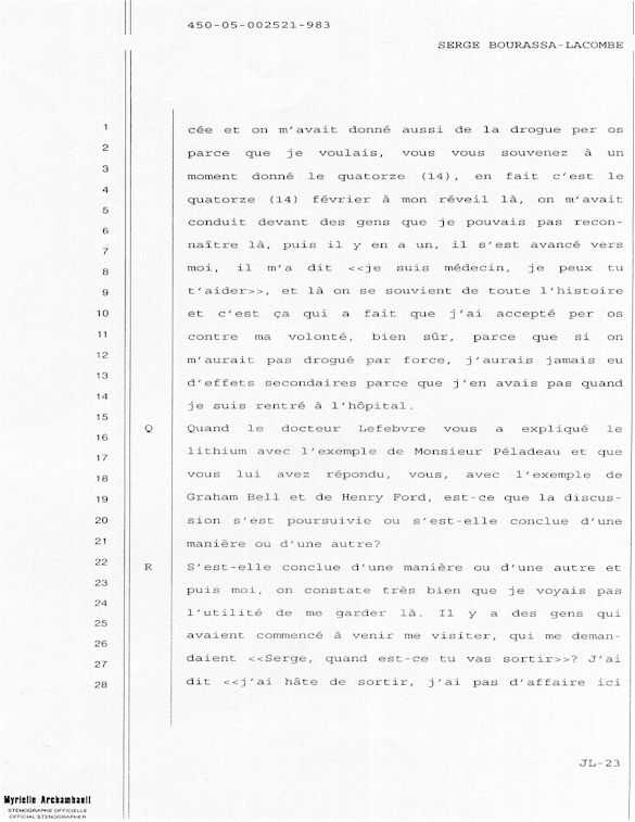 COMUNICADO DE PRENSA DEL MARTES 27 DE JUNIO DE 2000 - LA TRIBUNA DE SHERBROOKE - ESCASEZ DE PSIQUIATRAS AL CHUS - DURANTE LOS 10 ÚLTIMOS MESES, SEIS DE LOS 18 MIEMBROS DEL EQUIPO DE ESPECIALISTAS DEL DEPARTAMENTO DE PSIQUIATRÍA DEL CENTRO HOSPITALARIO UNIVERSITARIO DE SHERBROOKE VOLVIERON A PONER SU DIMISIÓN. - 30 - A SERGE JOSÉ ADRIEN BOURASSA-LACOMBE LE QUISIERA SABER: ¿SE IMPLICABAN EN EL EXPEDIENTE DEL CHUS 398.068? ¿SE ENFRENTARON AL POTENCIAL DE PELIGROSIDAD DEL MEDIO (O INCLUSO MAFIA MÉDICA)? SI ALGÚN EL POSEE INFORMACIÓN QUE PUEDE AYUDARME A OBTENER JUSTICIA ANTE EL CUERPO MÉDICO IMPLICADO EN EL EXPEDIENTE DEL CHUS 398 068. ESTAS REVELACIONES SE APRECIARÁN MUY PARA CONVENCER LOS CULPABLES ARREPENTIRSE E INCLUIR QUE LA VERDAD QUE ES DICHA CELIDONIA EL CUERPO Y CURADA EL ALMA. ENTONCES ES MEJOR PARA ELLOS QUE LA VERDAD ESTÉ REVELADA LO MÁS BIEN POSIBLE, YA QUE JÉSUS LE CHRIST PONDRÁ UN DÍA EN LUZ LO QUE SE OCULTA EN LAS OSCURIDAD, Y QUE MANIFESTARÁ LAS INTENCIONES DE LOS C?URS. ¡ENTONCES CADA UNO RECIBIRÁ DE DIOS LA ALABANZA QUE SE LE DEBERÁ!