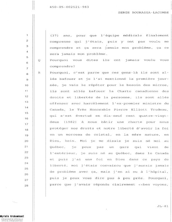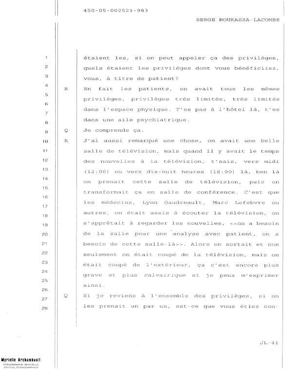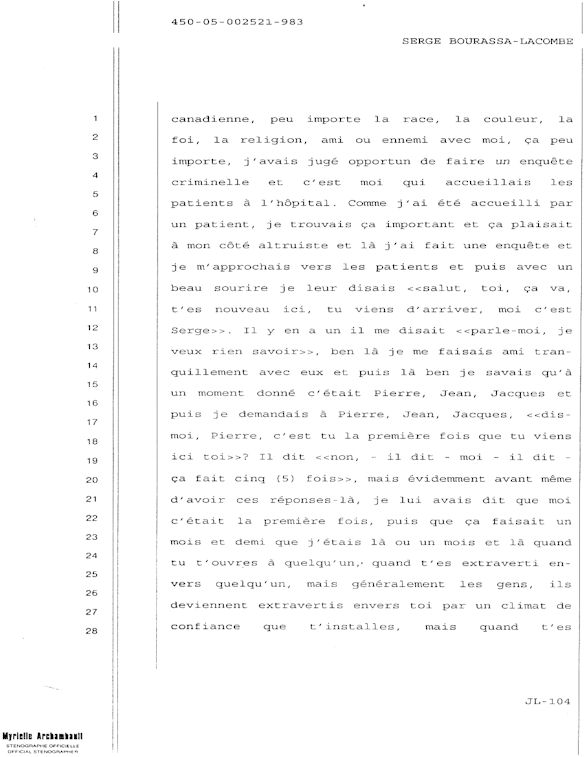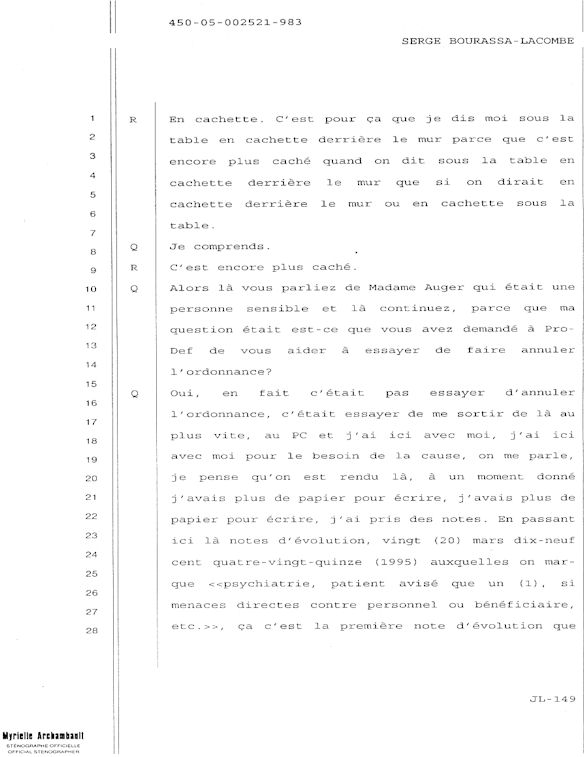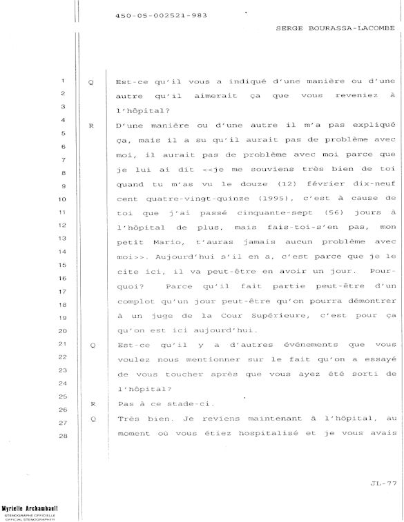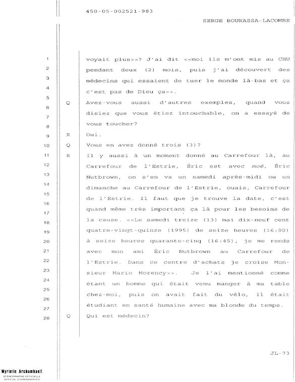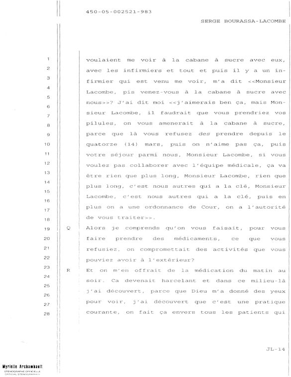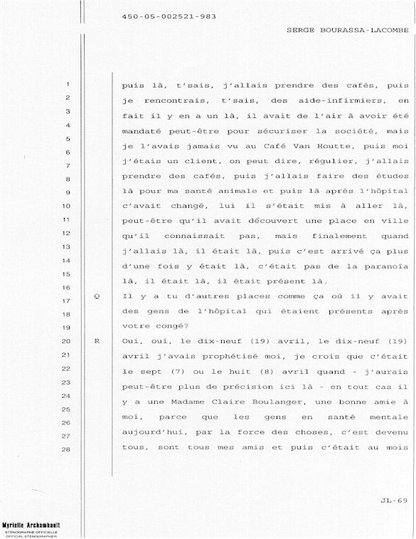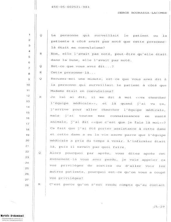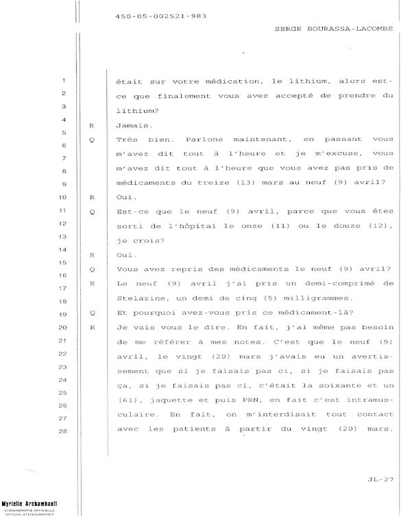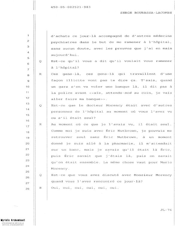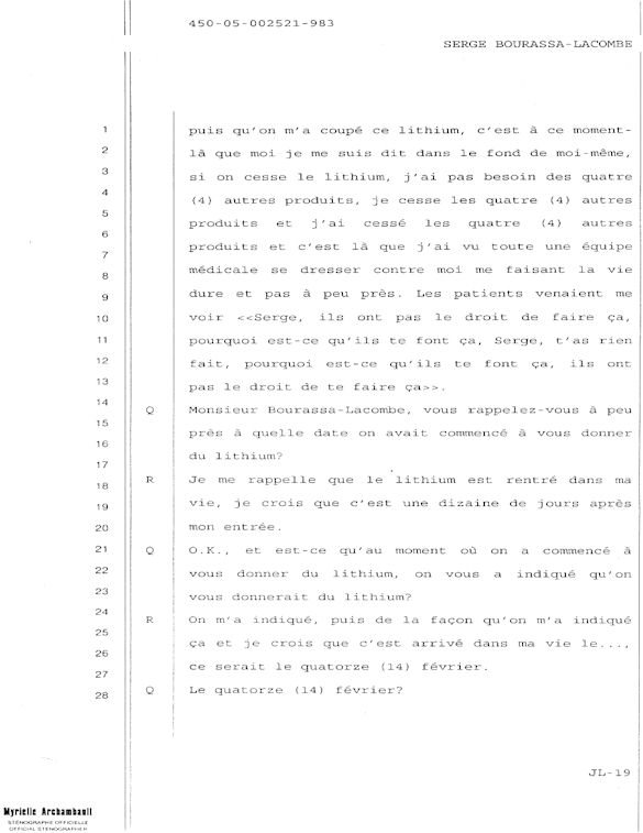 COMUNICADO DE PRENSA DEL MARTES 27 DE JUNIO DE 2000 - LA TRIBUNA DE SHERBROOKE - ESCASEZ DE PSIQUIATRAS AL CHUS - DURANTE LOS 10 ÚLTIMOS MESES, SEIS DE LOS 18 MIEMBROS DEL EQUIPO DE ESPECIALISTAS DEL DEPARTAMENTO DE PSIQUIATRÍA DEL CENTRO HOSPITALARIO UNIVERSITARIO DE SHERBROOKE VOLVIERON A PONER SU DIMISIÓN. - 30 - A SERGE JOSÉ ADRIEN BOURASSA-LACOMBE LE QUISIERA SABER: ¿SE IMPLICABAN EN EL EXPEDIENTE DEL CHUS 398.068? ¿SE ENFRENTARON AL POTENCIAL DE PELIGROSIDAD DEL MEDIO (O INCLUSO MAFIA MÉDICA)? SI ALGÚN EL POSEE INFORMACIÓN QUE PUEDE AYUDARME A OBTENER JUSTICIA ANTE EL CUERPO MÉDICO IMPLICADO EN EL EXPEDIENTE DEL CHUS 398 068. ESTAS REVELACIONES SE APRECIARÁN MUY PARA CONVENCER LOS CULPABLES ARREPENTIRSE E INCLUIR QUE LA VERDAD QUE ES DICHA CELIDONIA EL CUERPO Y CURADA EL ALMA. ENTONCES ES MEJOR PARA ELLOS QUE LA VERDAD ESTÉ REVELADA LO MÁS BIEN POSIBLE, YA QUE JÉSUS LE CHRIST PONDRÁ UN DÍA EN LUZ LO QUE SE OCULTA EN LAS OSCURIDAD, Y QUE MANIFESTARÁ LAS INTENCIONES DE LOS C?URS. ¡ENTONCES CADA UNO RECIBIRÁ DE DIOS LA ALABANZA QUE SE LE DEBERÁ!