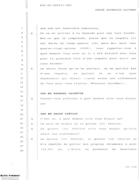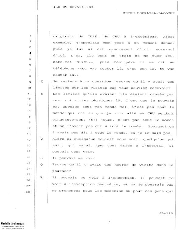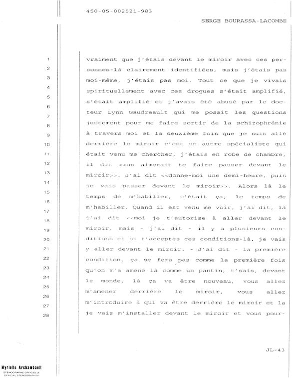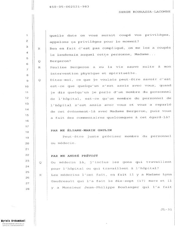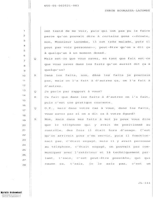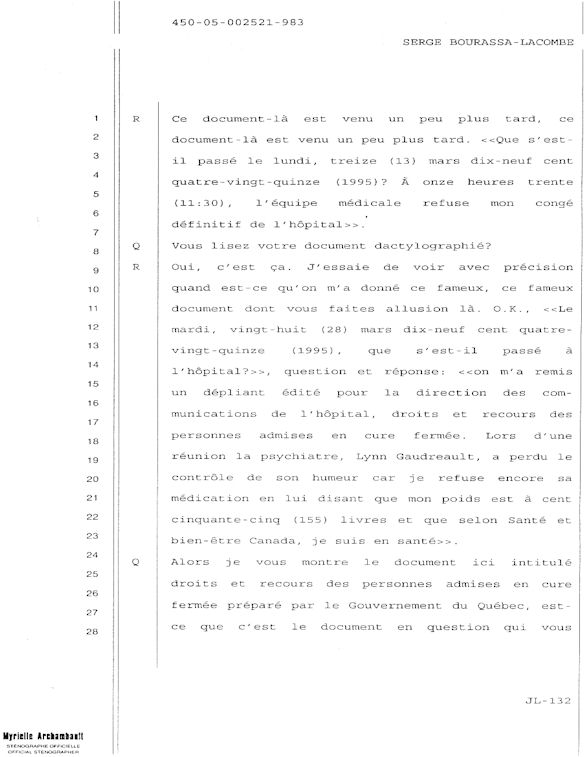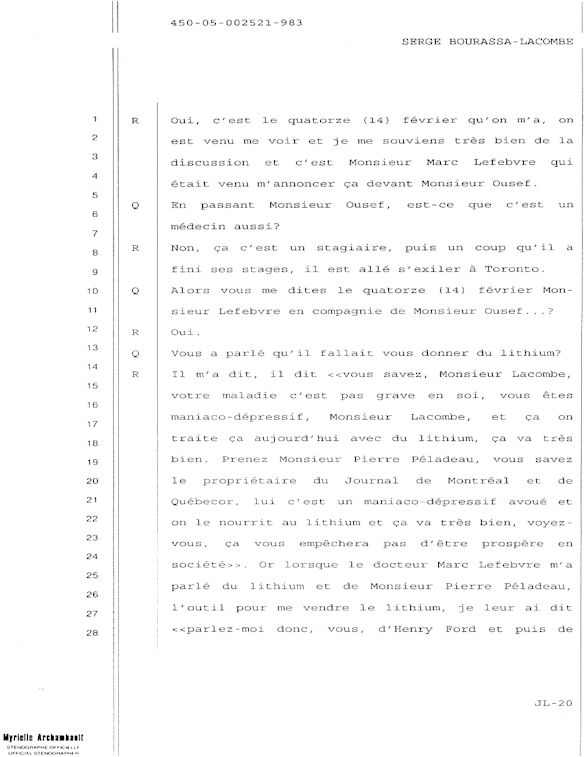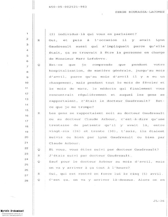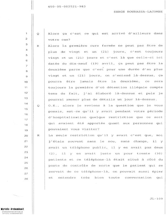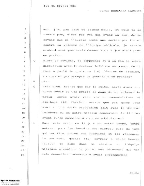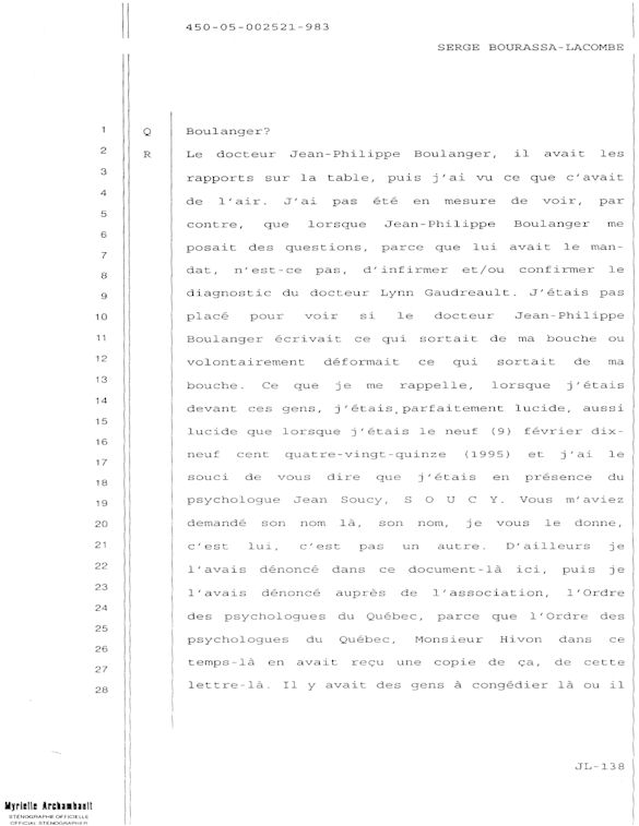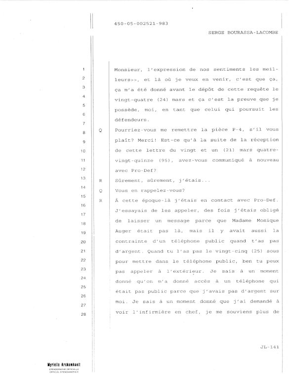 COMUNICADO DE PRENSA DEL MARTES 27 DE JUNIO DE 2000 - LA TRIBUNA DE SHERBROOKE - ESCASEZ DE PSIQUIATRAS AL CHUS - DURANTE LOS 10 ÚLTIMOS MESES, SEIS DE LOS 18 MIEMBROS DEL EQUIPO DE ESPECIALISTAS DEL DEPARTAMENTO DE PSIQUIATRÍA DEL CENTRO HOSPITALARIO UNIVERSITARIO DE SHERBROOKE VOLVIERON A PONER SU DIMISIÓN. - 30 - A SERGE JOSÉ ADRIEN BOURASSA-LACOMBE LE QUISIERA SABER: ¿SE IMPLICABAN EN EL EXPEDIENTE DEL CHUS 398.068? ¿SE ENFRENTARON AL POTENCIAL DE PELIGROSIDAD DEL MEDIO (O INCLUSO MAFIA MÉDICA)? SI ALGÚN EL POSEE INFORMACIÓN QUE PUEDE AYUDARME A OBTENER JUSTICIA ANTE EL CUERPO MÉDICO IMPLICADO EN EL EXPEDIENTE DEL CHUS 398 068. ESTAS REVELACIONES SE APRECIARÁN MUY PARA CONVENCER LOS CULPABLES ARREPENTIRSE E INCLUIR QUE LA VERDAD QUE ES DICHA CELIDONIA EL CUERPO Y CURADA EL ALMA. ENTONCES ES MEJOR PARA ELLOS QUE LA VERDAD ESTÉ REVELADA LO MÁS BIEN POSIBLE, YA QUE JÉSUS LE CHRIST PONDRÁ UN DÍA EN LUZ LO QUE SE OCULTA EN LAS OSCURIDAD, Y QUE MANIFESTARÁ LAS INTENCIONES DE LOS C?URS. ¡ENTONCES CADA UNO RECIBIRÁ DE DIOS LA ALABANZA QUE SE LE DEBERÁ!