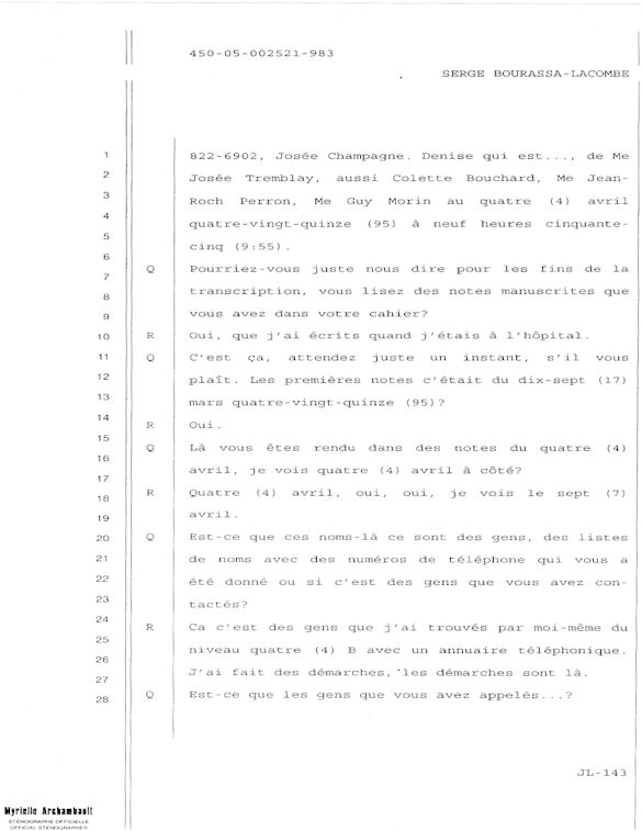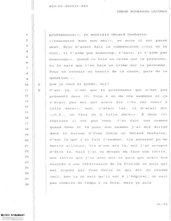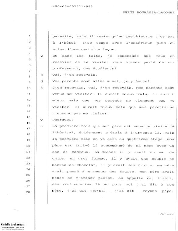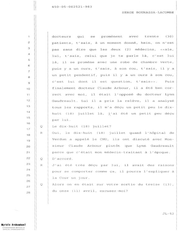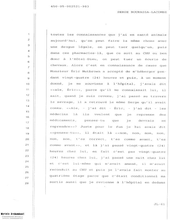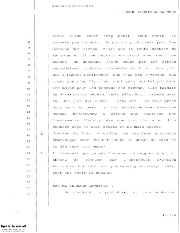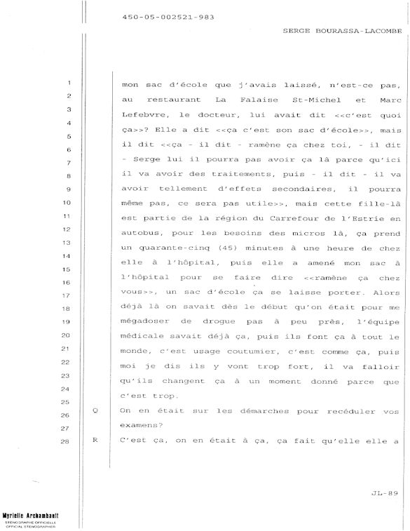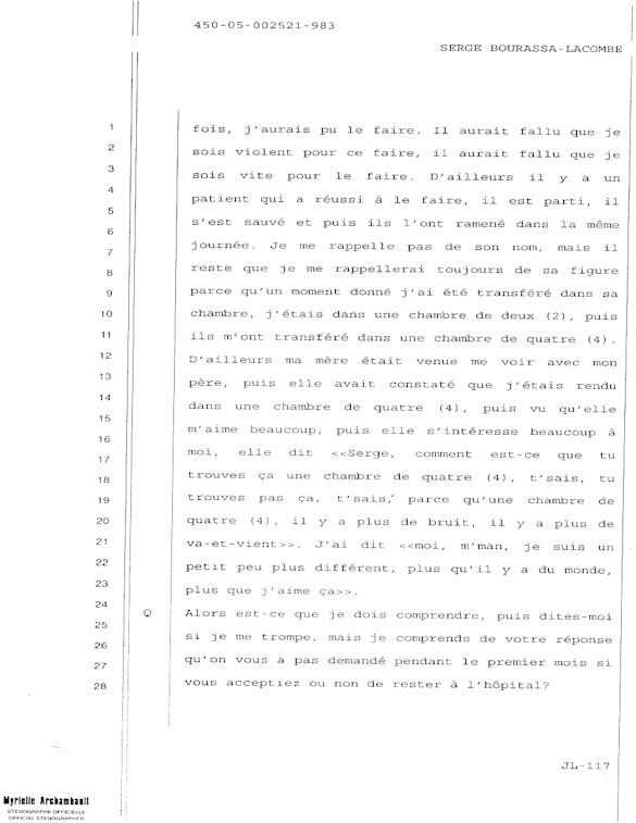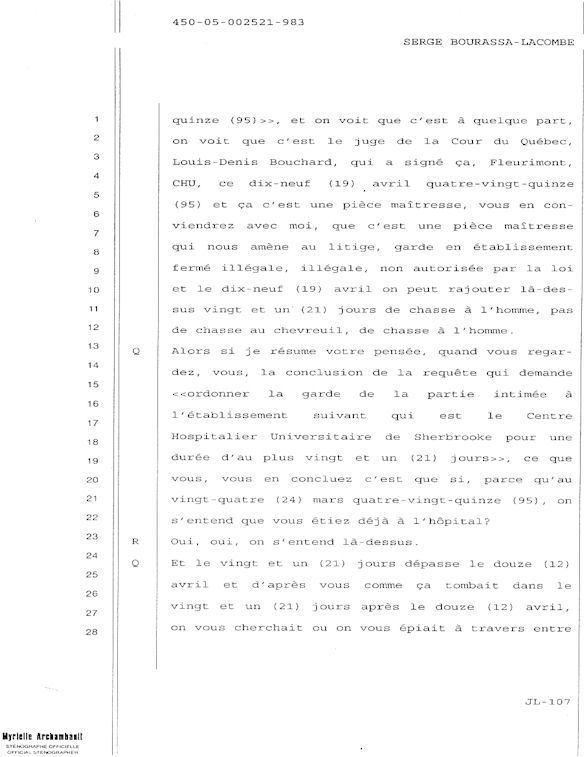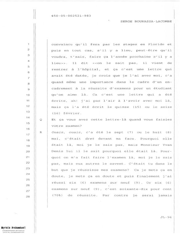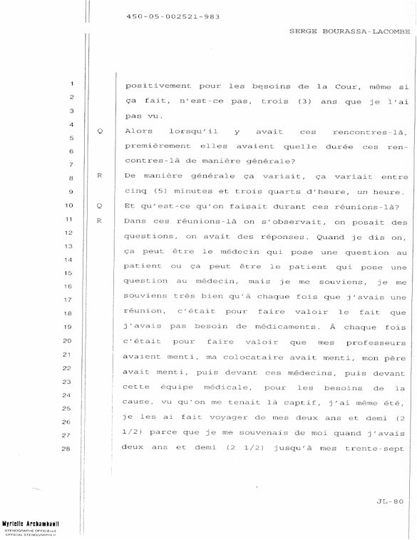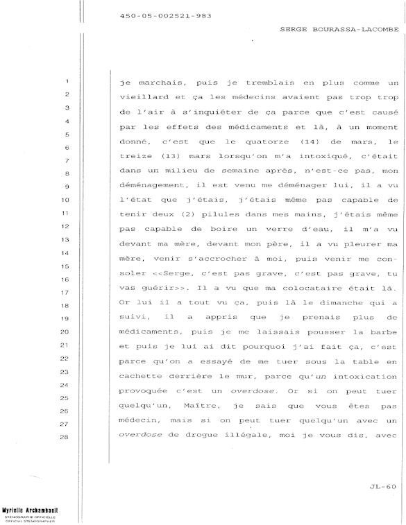 COMUNICADO DE PRENSA DEL MARTES 27 DE JUNIO DE 2000 - LA TRIBUNA DE SHERBROOKE - ESCASEZ DE PSIQUIATRAS AL CHUS - DURANTE LOS 10 ÚLTIMOS MESES, SEIS DE LOS 18 MIEMBROS DEL EQUIPO DE ESPECIALISTAS DEL DEPARTAMENTO DE PSIQUIATRÍA DEL CENTRO HOSPITALARIO UNIVERSITARIO DE SHERBROOKE VOLVIERON A PONER SU DIMISIÓN. - 30 - A SERGE JOSÉ ADRIEN BOURASSA-LACOMBE LE QUISIERA SABER: ¿SE IMPLICABAN EN EL EXPEDIENTE DEL CHUS 398.068? ¿SE ENFRENTARON AL POTENCIAL DE PELIGROSIDAD DEL MEDIO (O INCLUSO MAFIA MÉDICA)? SI ALGÚN EL POSEE INFORMACIÓN QUE PUEDE AYUDARME A OBTENER JUSTICIA ANTE EL CUERPO MÉDICO IMPLICADO EN EL EXPEDIENTE DEL CHUS 398 068. ESTAS REVELACIONES SE APRECIARÁN MUY PARA CONVENCER LOS CULPABLES ARREPENTIRSE E INCLUIR QUE LA VERDAD QUE ES DICHA CELIDONIA EL CUERPO Y CURADA EL ALMA. ENTONCES ES MEJOR PARA ELLOS QUE LA VERDAD ESTÉ REVELADA LO MÁS BIEN POSIBLE, YA QUE JÉSUS LE CHRIST PONDRÁ UN DÍA EN LUZ LO QUE SE OCULTA EN LAS OSCURIDAD, Y QUE MANIFESTARÁ LAS INTENCIONES DE LOS C?URS. ¡ENTONCES CADA UNO RECIBIRÁ DE DIOS LA ALABANZA QUE SE LE DEBERÁ!