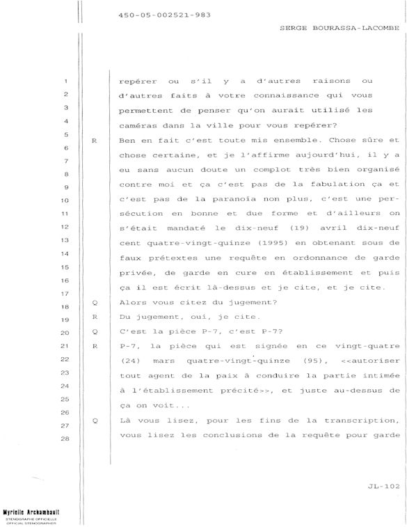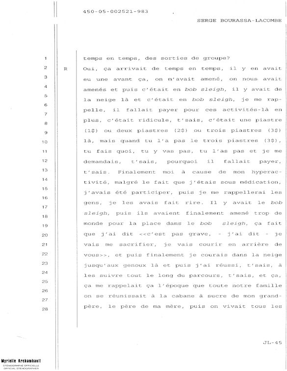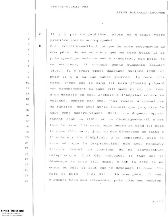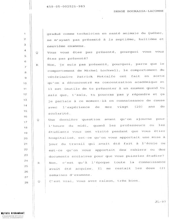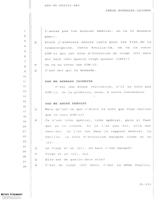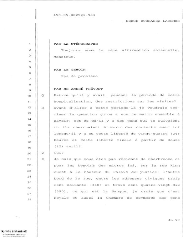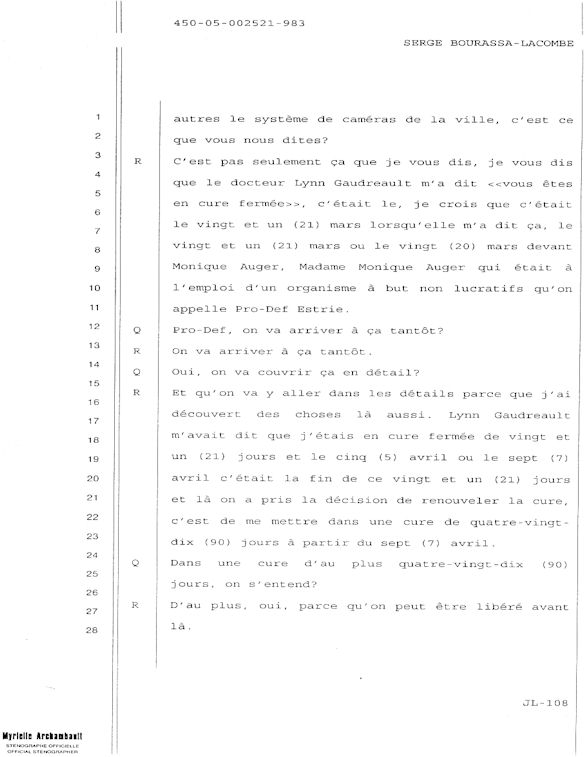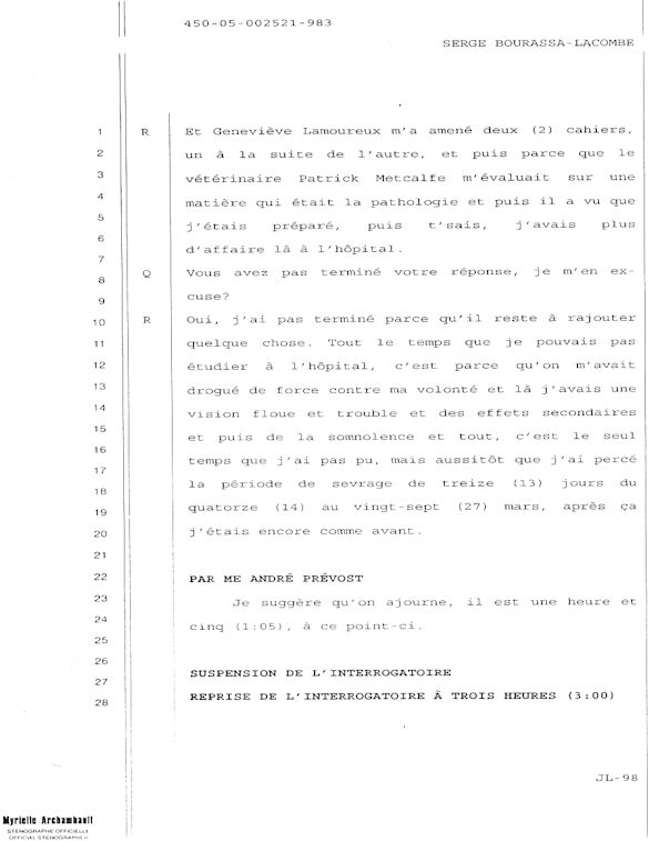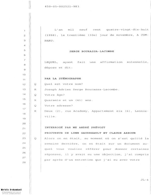 PROVINCE DE QUÉBEC DISTRICT: ST-FRANÇOIS CAUSE NO: 450-05-002521-983 ÉTAPE: INTERROGATOIRE AVANT DÉFENSE