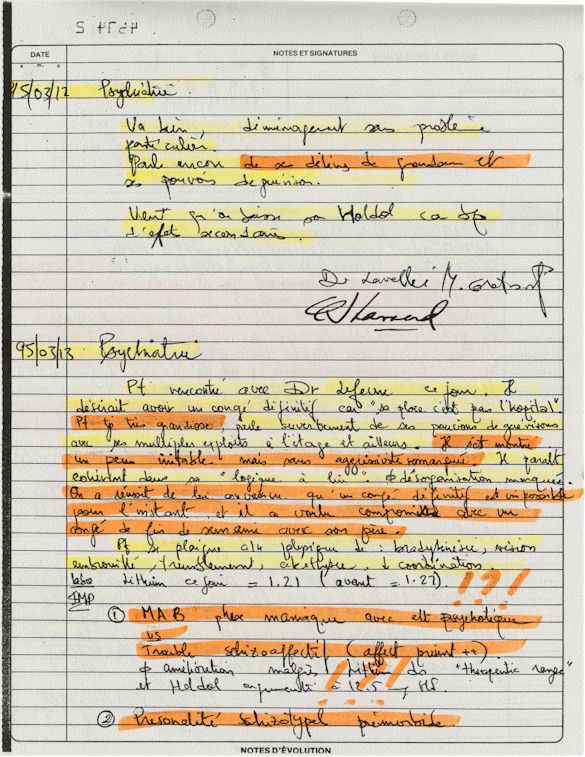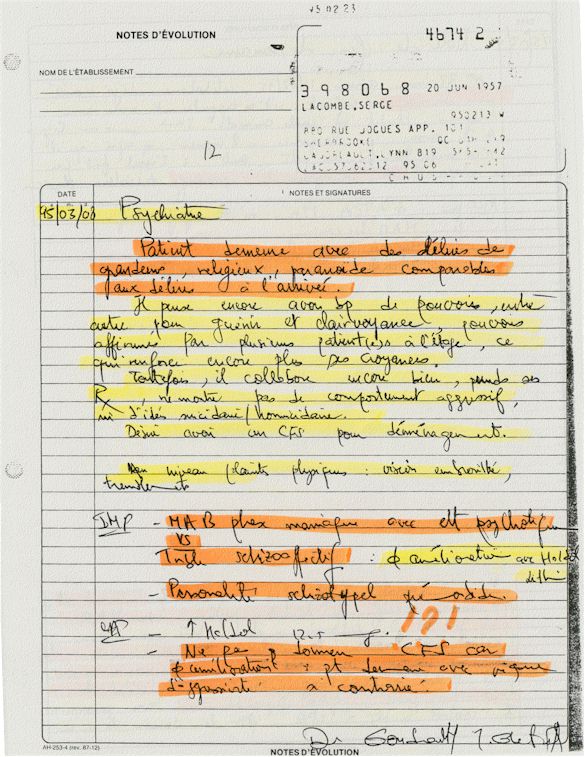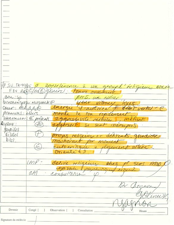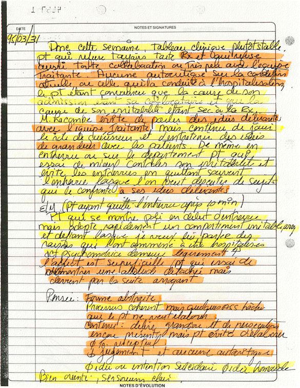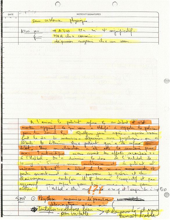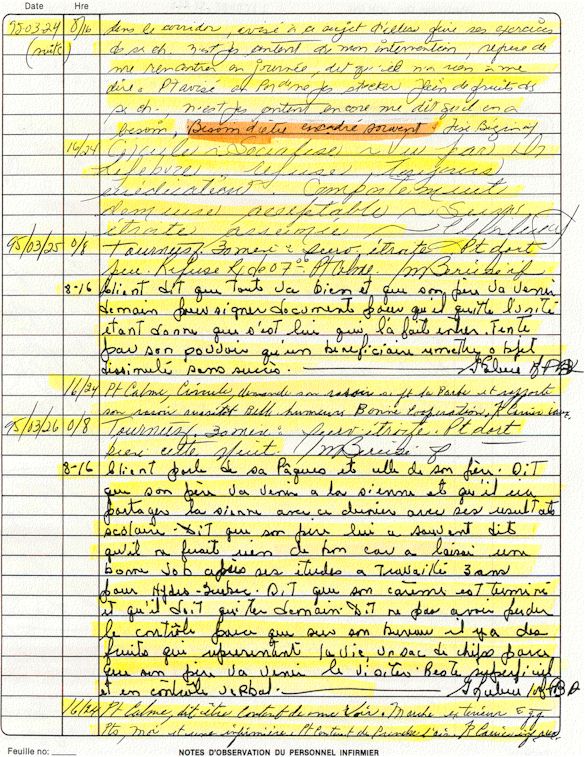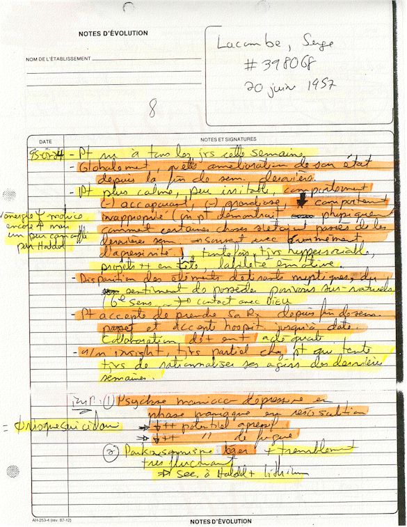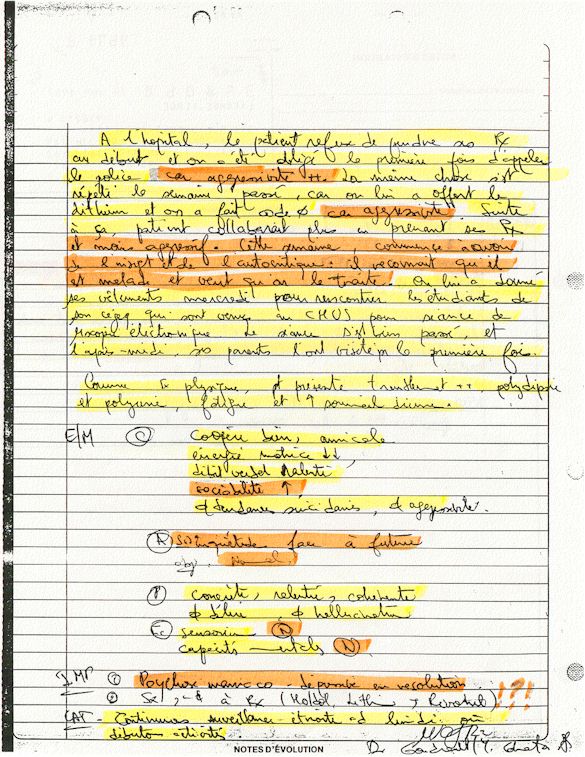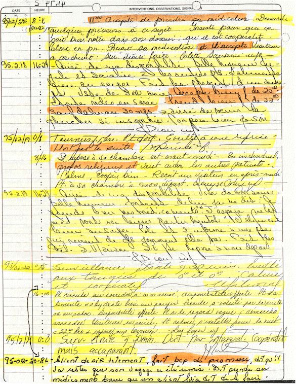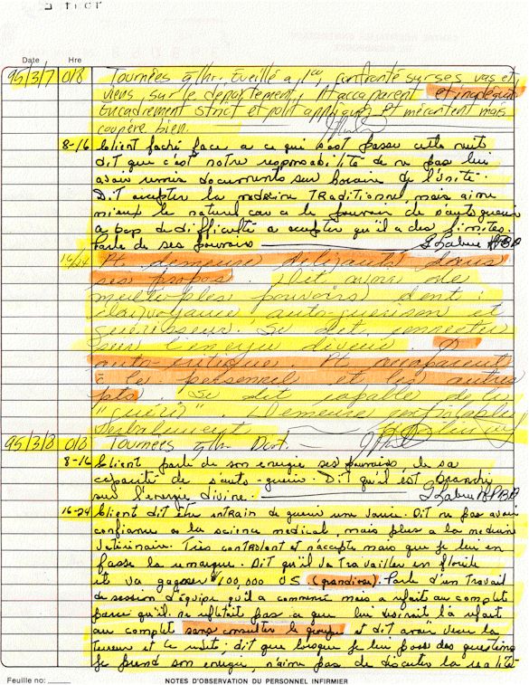 Observation de l'Infirmière - 16a - Observation of the Nurse Régistre de la Salle d'Urgence - Register of the Emergency Room Évaluation Admission Psychiatrie - Psychiatric Admission Evaluation Électrocardiogramme - Electrocardiogram Électrocardiogramme - Electrocardiogram