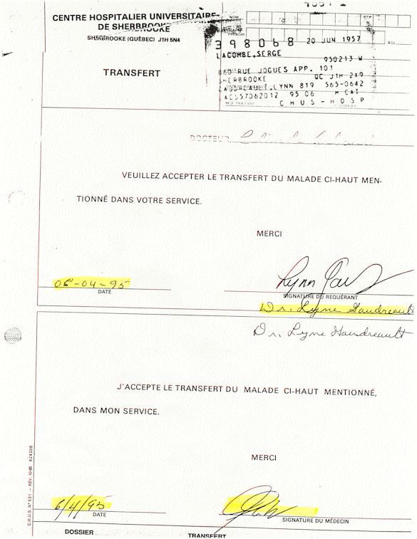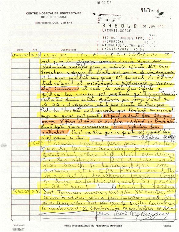 Ce dossier médical a été créé à l'insu de son patient par une équipe médicale «Sans FOI ni LOI» qui c'est évertuer à l'époque à travailler derrière le mur de la honte du CHUS pour se protéger d'un OPPROBRE SANS PRÉCÉDENT.