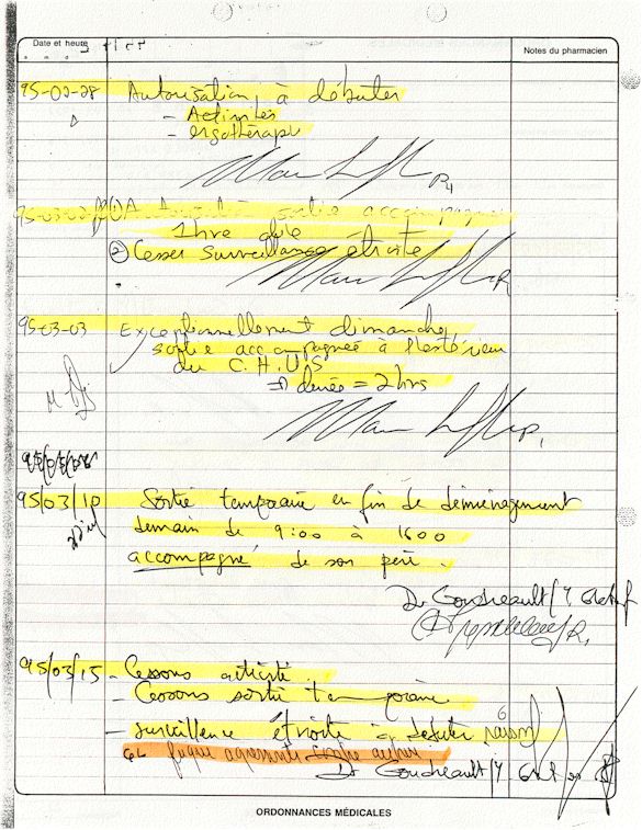 In this June 2000, here is my manner of expressing my anger towards all those who participated nearly or from a distance in the creation of these medical records which was hidden from me during 34 months among which here is the list: