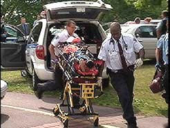 Un policier a tenté de le sortir de l'eau, mais le suspect aurait brandi un couteau. Une agente a alors tiré trois coups de feu vers le suspect.