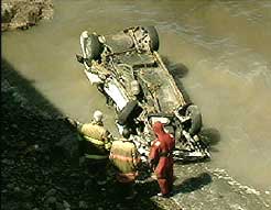 Un homme de 34 ans a perdu la vie dimanche lorsque son automobile a plongé dans les eaux de la rivière Saguenay, dans le secteur de Chicoutimi. En apercevant des pièces de la voiture sur le rivage, un passant a alerté les policiers. Les recherches ont permis de retrouver la victime, Daniel Fortier, qui se trouvait toujours à bord du véhicule. Les policiers ont remarqué de longues traces de freinage sur la chaussée. L'homme serait parti de chez lui samedi soir avec la voiture de sa mère, sans la permission de celle-ci. Il n'a pas été revu par la suite. La vitesse pourrait être en cause dans cette affaire. En vidéo, voyez le reportage de Sonia Lavoie. Copyright © 1998-2003 Groupe TVA inc. - Tout droits réservés |