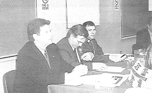 La Fédération des étudiants et étudiantes de l'Université de Sherbrooke a tenu, la semaine dernière, un débat réunissant six des candidats de la présente campagne électorale dans le comté de Sherbrooke, devant une soixantaine d'étudiants et d'étudiantes. Serge Cardin, Bloc québécois, Olivier Chalifoux (en remplacement de Craig Wright), NPD, Mark Quinlan, Alliance Canadienne, Éric L'heureux, Parti conservateur, Serge Lachapelle, Parti marxiste-léniniste ainsi que Serge Bourassa-Lacombe, indépendant, se sont tous exprimés sur des sujets qui préocupent la jeunesse et le monde étudiant. Sans grande envolée, sans grand débat, les différents candidats se sont plutôt contentés de jouer la carte de la pondération. À souligner l'absence du candidat libéral Jean-François Rouleau. Sur la photo, on aperçoit Serge Cardin, Olivier Chalifoux ainsi que Serge Bourassa-Lacombe. Photo La Nouvelle Sébastien Lajoie |