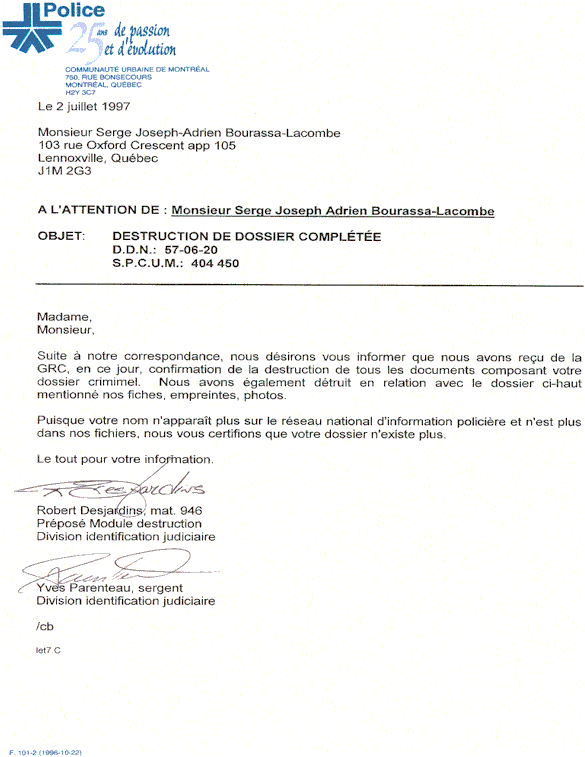 votre nom n'apparaît plus sur le réseau national d'information policière et n'est plus