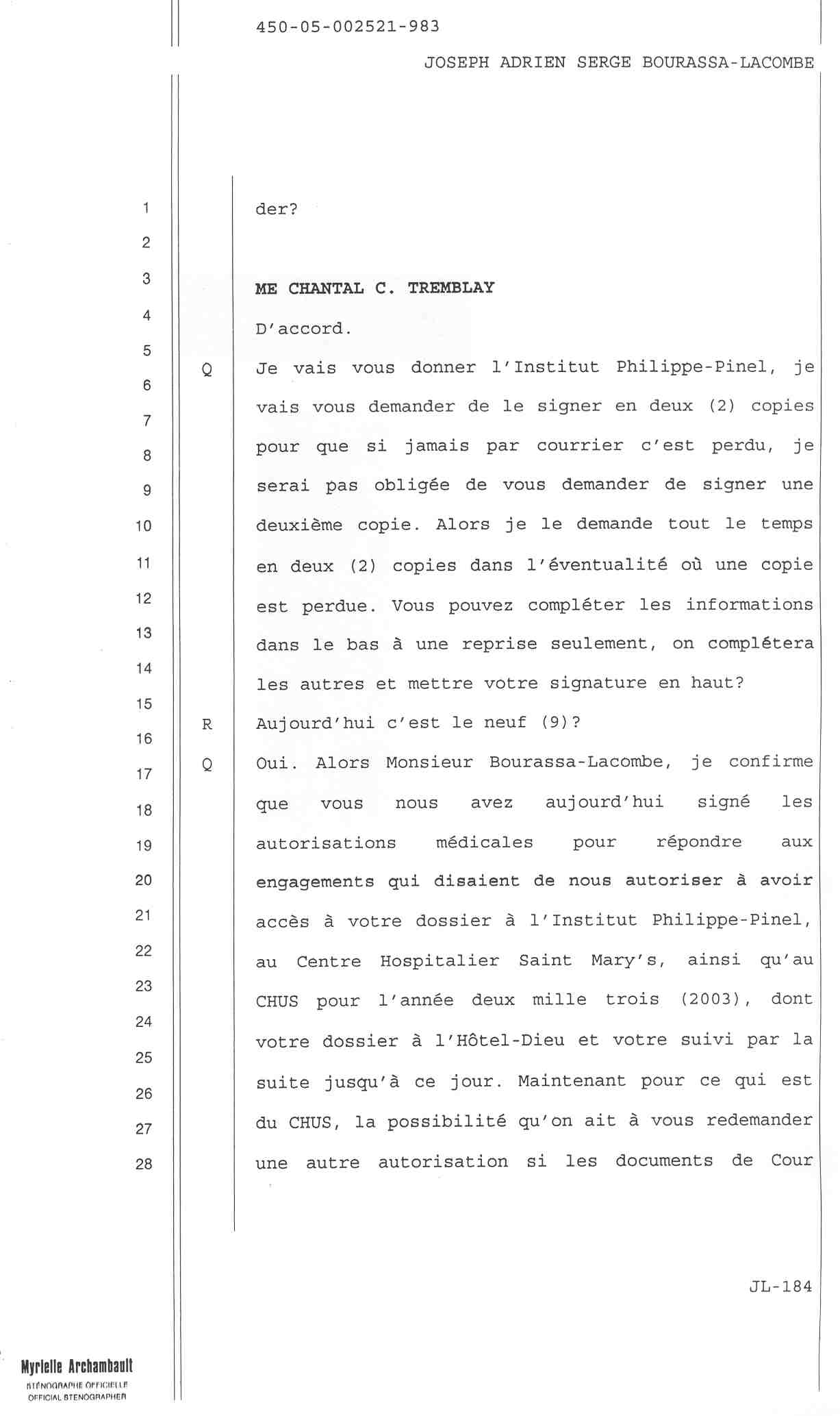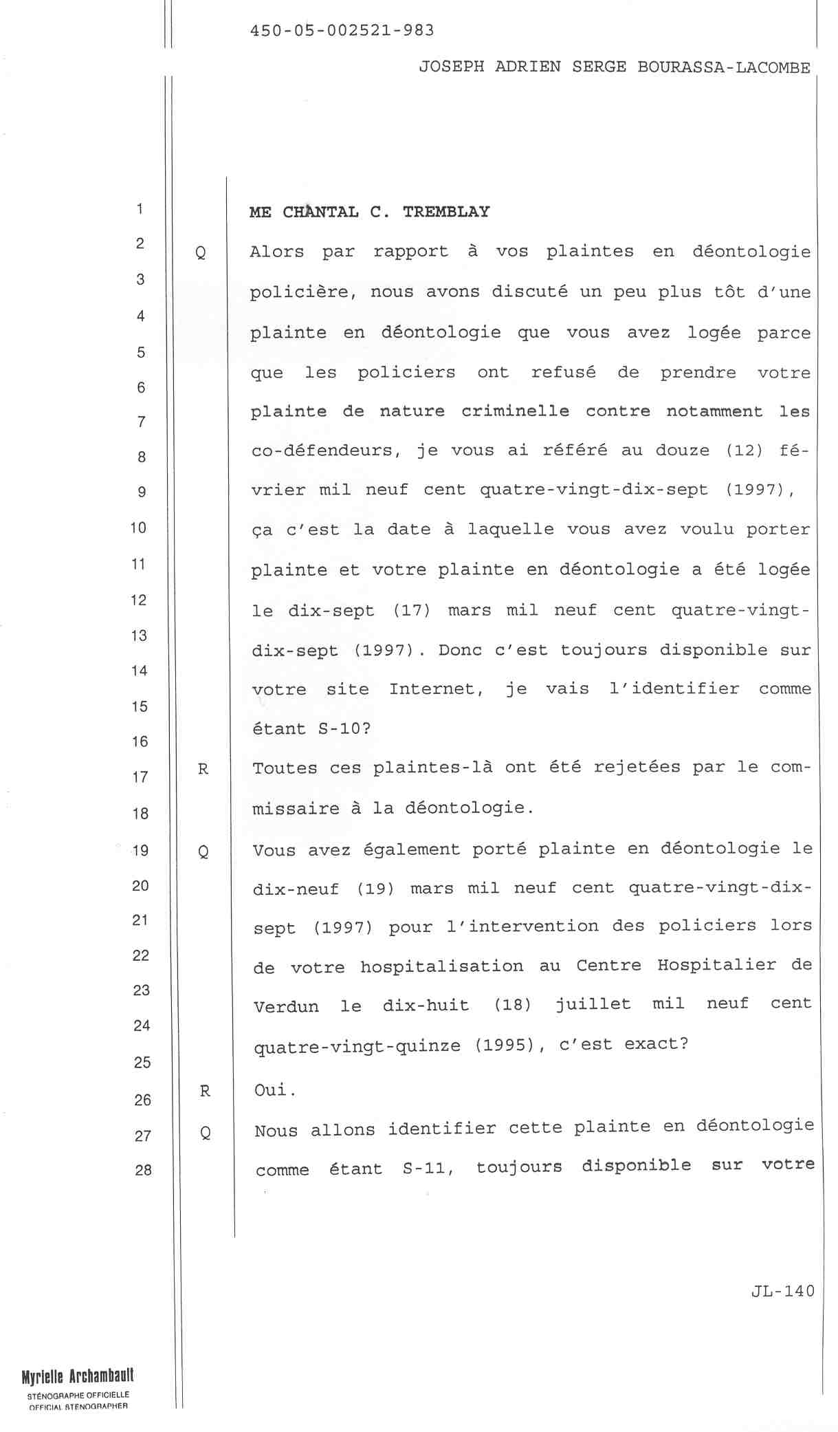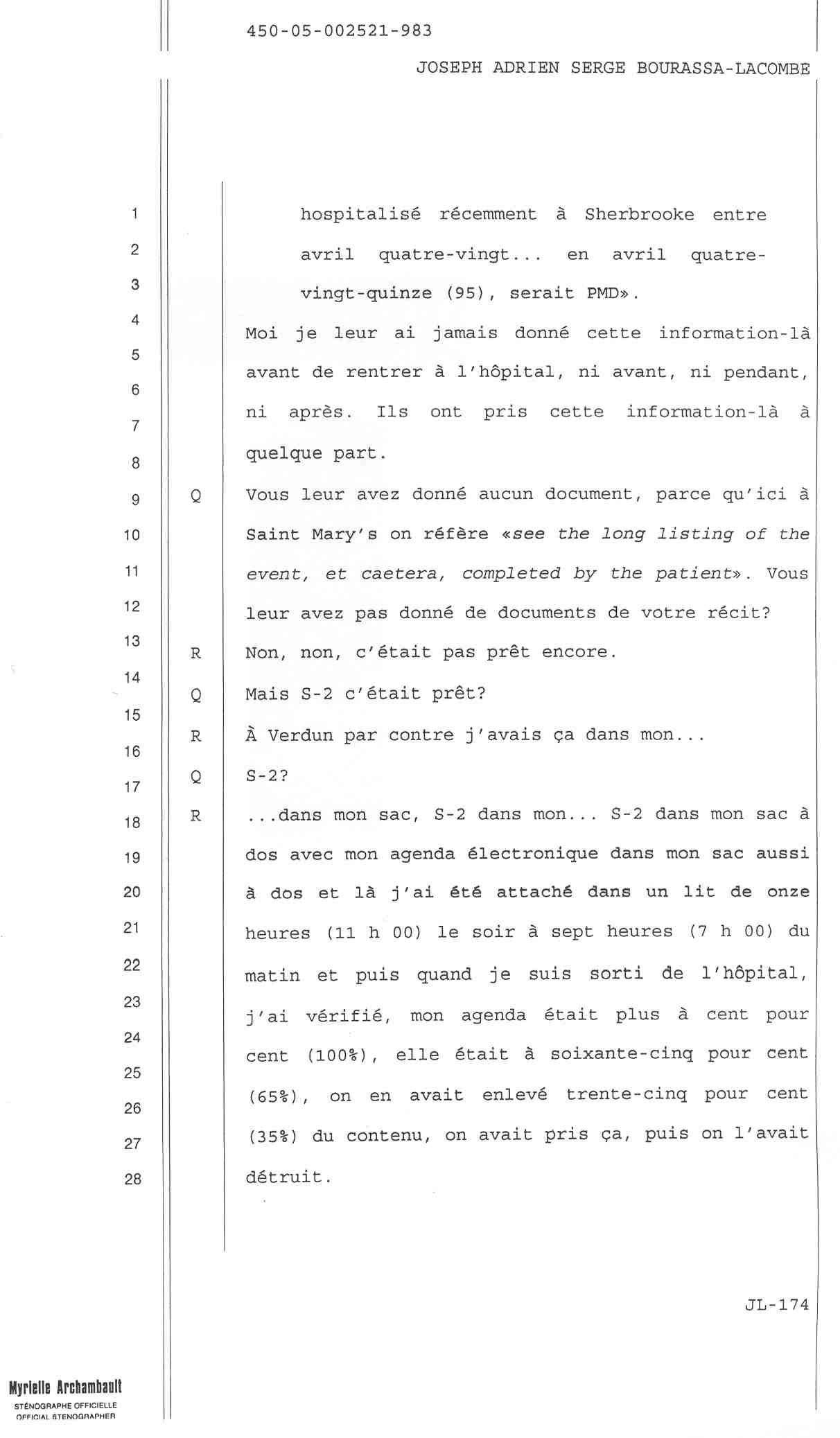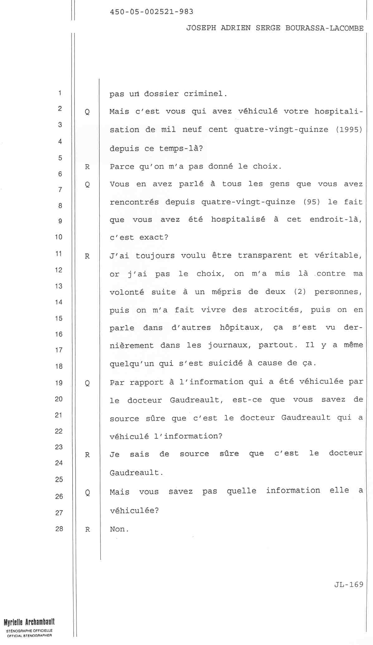 EN MEMORIA DEL 04 DE JULIO DE 1996 CUANDO VIVÍA EN E Y A LA BÚSQUEDA DE MI PROPIA COMIDA, EFECTUÉ UNA ENTREGA ESPECIAL AL XXVIE CONGRESO INTERNACIONAL DE DERECHO Y SALUD MENTAL QUE ESTO SE DESENROLLA EN MONTREAL DEL 4 AL 6 DE JULIO DE 2001 A LA ATENCIÓN DEL DR. ANDRÉ LAFLEUR, DG DEL INSTITUTO PHILIPPE PINEL DE MONTREAL. DEPOSITÉ COMO OFRENDA, 800 TARJETAS DE ASUNTOS DE LA FUNDACIÓN SARGA BOURASSA-LACOMBE SEAN UNA TARJETA PARA CADA MIEMBRO DEL CONGRESO ESPERADO A ESTE CONGRESO, 1 KILOGRAMO DE RED DE PLACA DESCOMPUESTA Y 3 PEDAZOS DE TARTA DE LOS ÁNGELES PARA QUE EL DR. LAFLEUR UNO DE LOS ORGANIZADORES DEL ACONTECIMIENTO INCLUYA QUE TENDRÍA MEJOR VALUE EN NOMBRE DE LOS DERECHOS HUMANOS Y DE LA SALUD MENTAL INVITAR LA FUNDACIÓN SARGA BOURASSA-LACOMBE PARA QUE LOS MIEMBROS DEL CONGRESO PUEDAN BENEFICIARSE DEL PERITAJE ESPECIALIZADO EN SALUD MENTAL DE SU PRESIDENTE CON EL FIN DE VER UNA DISMINUCIÓN DE LA CRIMINALIDAD, REPETICIÓN CRIMINAL Y SUICIDIO PARA CONSTRUIR UN MEJOR PAÍS. ES NECESARIO QUE SEPAN QUE ESTA MISIÓN SERÁ IMPOSIBLE, MIENTRAS ÉL UN REPENTANCE NO HUBO A MI LUGAR EN LOS EXPEDIENTES MÉDICOS DE: CENTRO HOSPITALARIO UNIVERSITARIO DE SHERBROOKE, DEL CENTRO HOSPITALARIO DE VERDUN, DEL CENTRO HOSPITALARIO DE ST. MARY Y DEL INSTITUTO PHILIPPE PINEL DE MONTREAL.. POR ESO PARA HABER MULTIPLICADO LAS ACCIONES CRIMINALES DIRIGIDAS CONTRA MI PERSONA ACTUANDO SIN JUICIO DEL TRIBUNAL, DE TENERME DEJAR VIVIR SIN REFUGIO Y SIN COMIDA DURANTE MÁS DE TRES AÑOS.