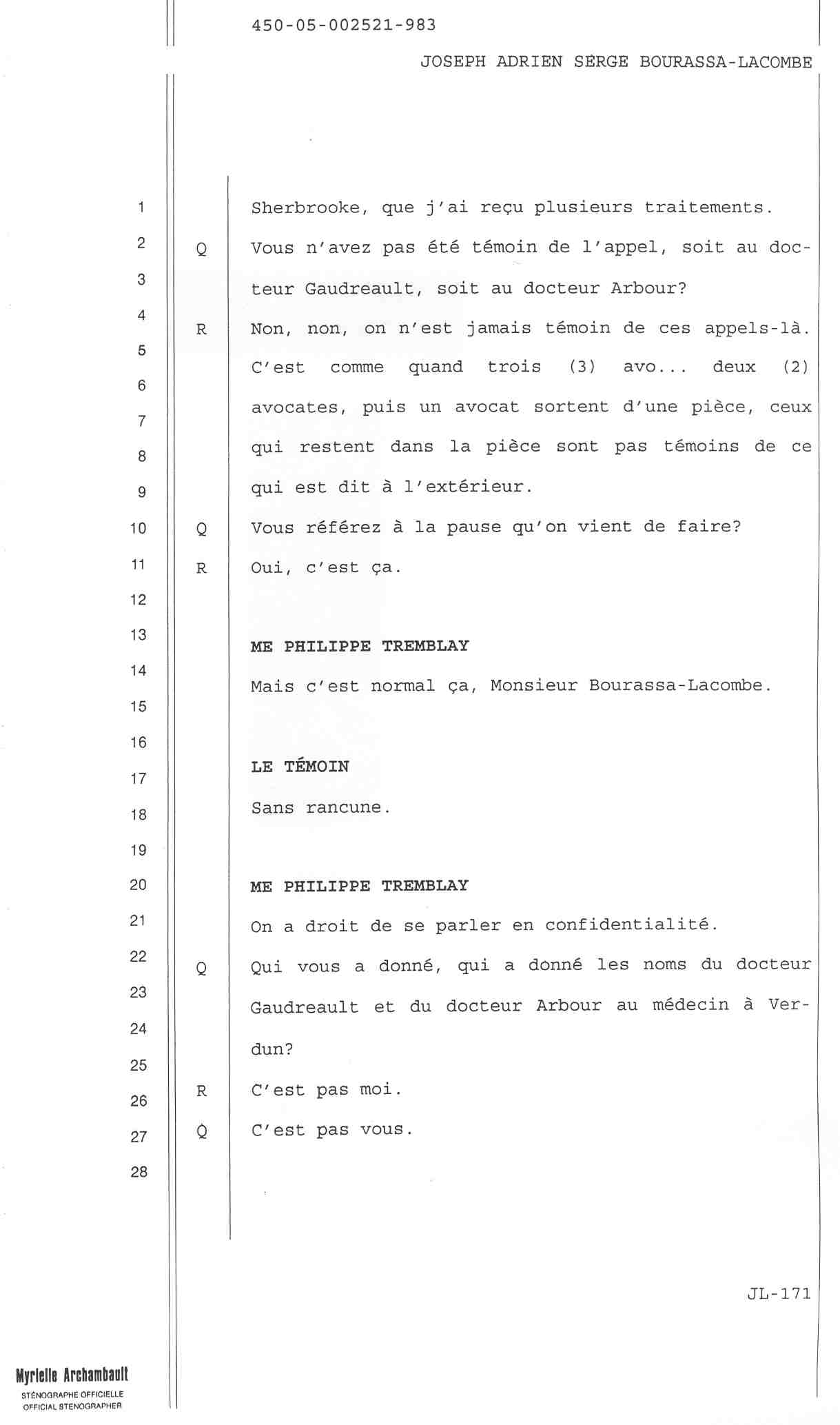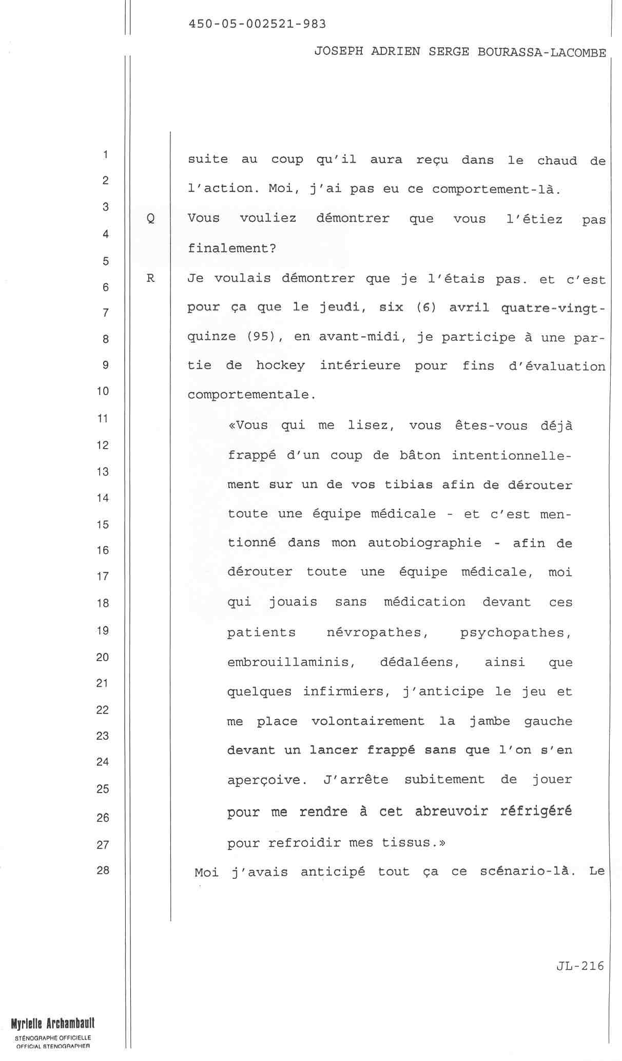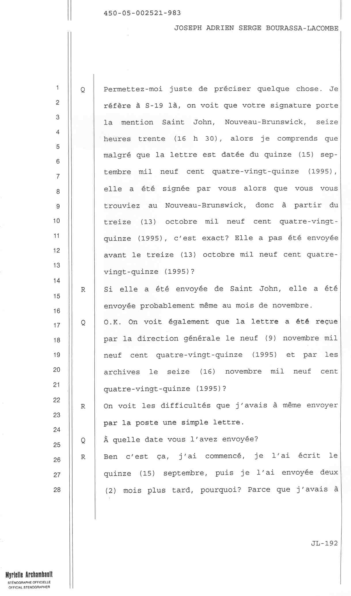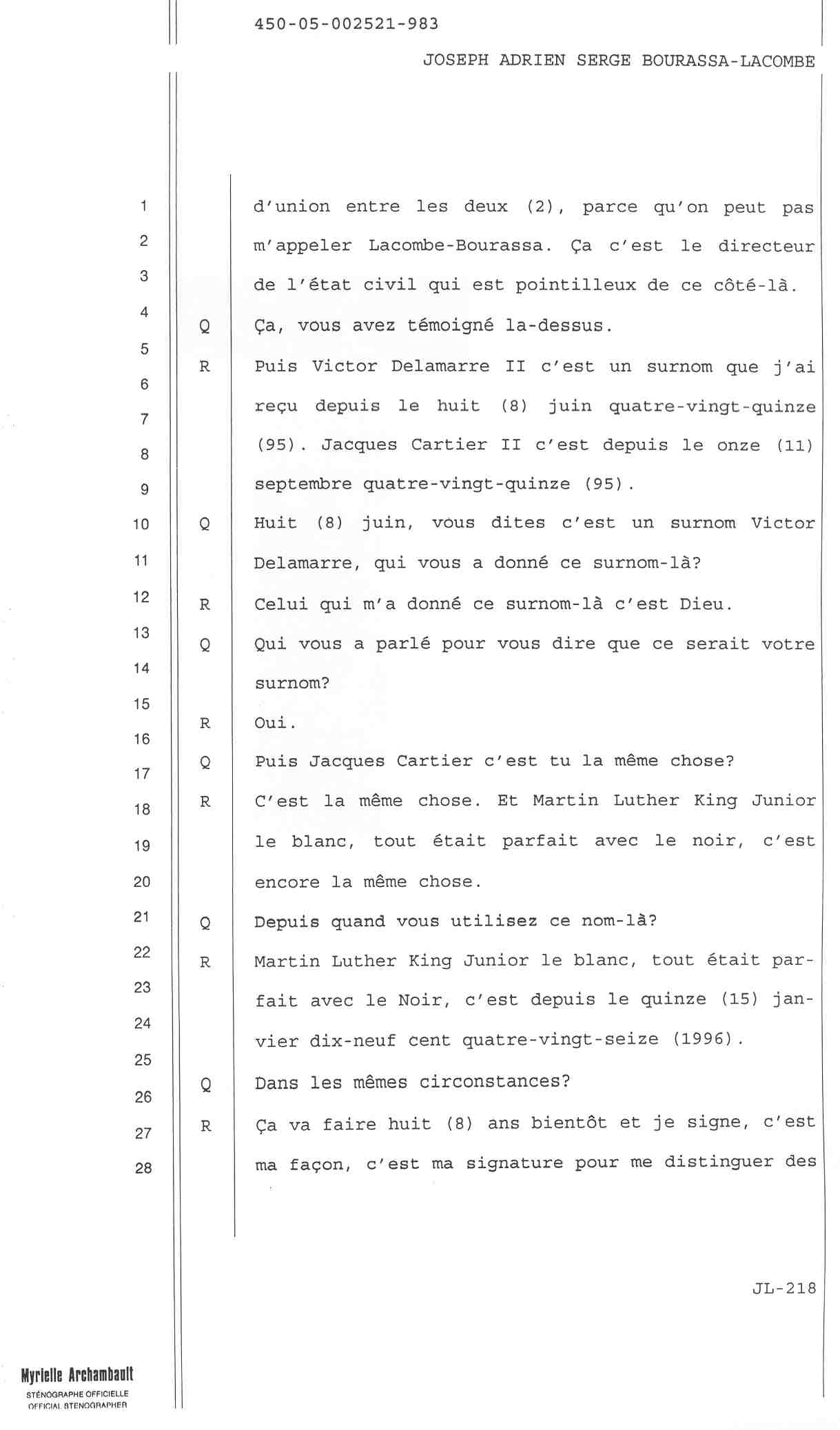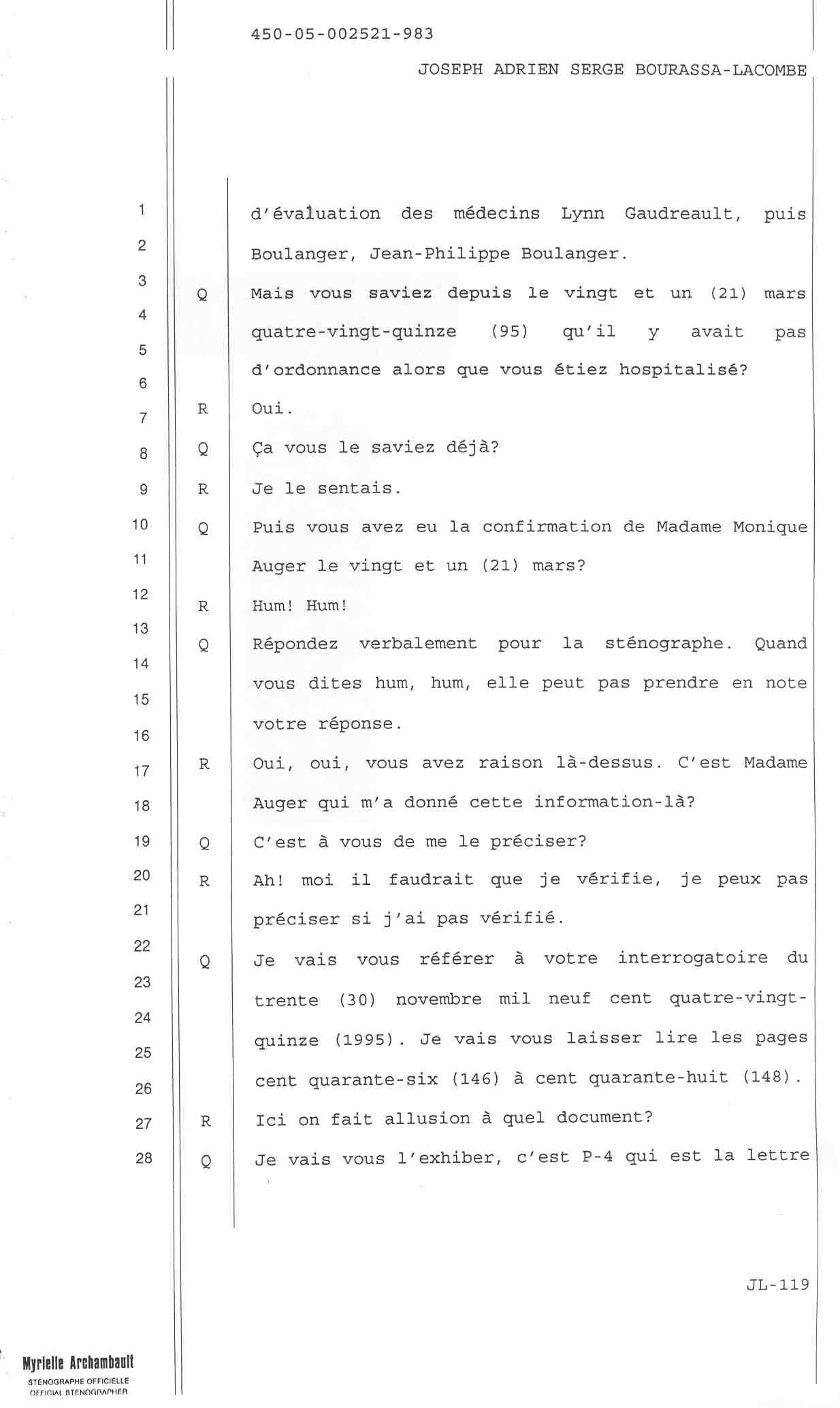 EN MEMORIA DEL 04 DE JULIO DE 1996 CUANDO VIVÍA EN E Y A LA BÚSQUEDA DE MI PROPIA COMIDA, EFECTUÉ UNA ENTREGA ESPECIAL AL XXVIE CONGRESO INTERNACIONAL DE DERECHO Y SALUD MENTAL QUE ESTO SE DESENROLLA EN MONTREAL DEL 4 AL 6 DE JULIO DE 2001 A LA ATENCIÓN DEL DR. ANDRÉ LAFLEUR, DG DEL INSTITUTO PHILIPPE PINEL DE MONTREAL. DEPOSITÉ COMO OFRENDA, 800 TARJETAS DE ASUNTOS DE LA FUNDACIÓN SARGA BOURASSA-LACOMBE SEAN UNA TARJETA PARA CADA MIEMBRO DEL CONGRESO ESPERADO A ESTE CONGRESO, 1 KILOGRAMO DE RED DE PLACA DESCOMPUESTA Y 3 PEDAZOS DE TARTA DE LOS ÁNGELES PARA QUE EL DR. LAFLEUR UNO DE LOS ORGANIZADORES DEL ACONTECIMIENTO INCLUYA QUE TENDRÍA MEJOR VALUE EN NOMBRE DE LOS DERECHOS HUMANOS Y DE LA SALUD MENTAL INVITAR LA FUNDACIÓN SARGA BOURASSA-LACOMBE PARA QUE LOS MIEMBROS DEL CONGRESO PUEDAN BENEFICIARSE DEL PERITAJE ESPECIALIZADO EN SALUD MENTAL DE SU PRESIDENTE CON EL FIN DE VER UNA DISMINUCIÓN DE LA CRIMINALIDAD, REPETICIÓN CRIMINAL Y SUICIDIO PARA CONSTRUIR UN MEJOR PAÍS. ES NECESARIO QUE SEPAN QUE ESTA MISIÓN SERÁ IMPOSIBLE, MIENTRAS ÉL UN REPENTANCE NO HUBO A MI LUGAR EN LOS EXPEDIENTES MÉDICOS DE: CENTRO HOSPITALARIO UNIVERSITARIO DE SHERBROOKE, DEL CENTRO HOSPITALARIO DE VERDUN, DEL CENTRO HOSPITALARIO DE ST. MARY Y DEL INSTITUTO PHILIPPE PINEL DE MONTREAL.. POR ESO PARA HABER MULTIPLICADO LAS ACCIONES CRIMINALES DIRIGIDAS CONTRA MI PERSONA ACTUANDO SIN JUICIO DEL TRIBUNAL, DE TENERME DEJAR VIVIR SIN REFUGIO Y SIN COMIDA DURANTE MÁS DE TRES AÑOS.