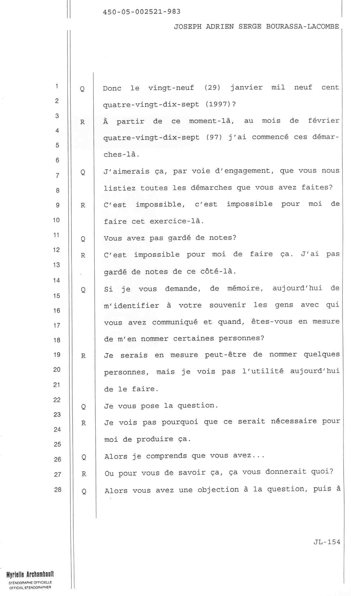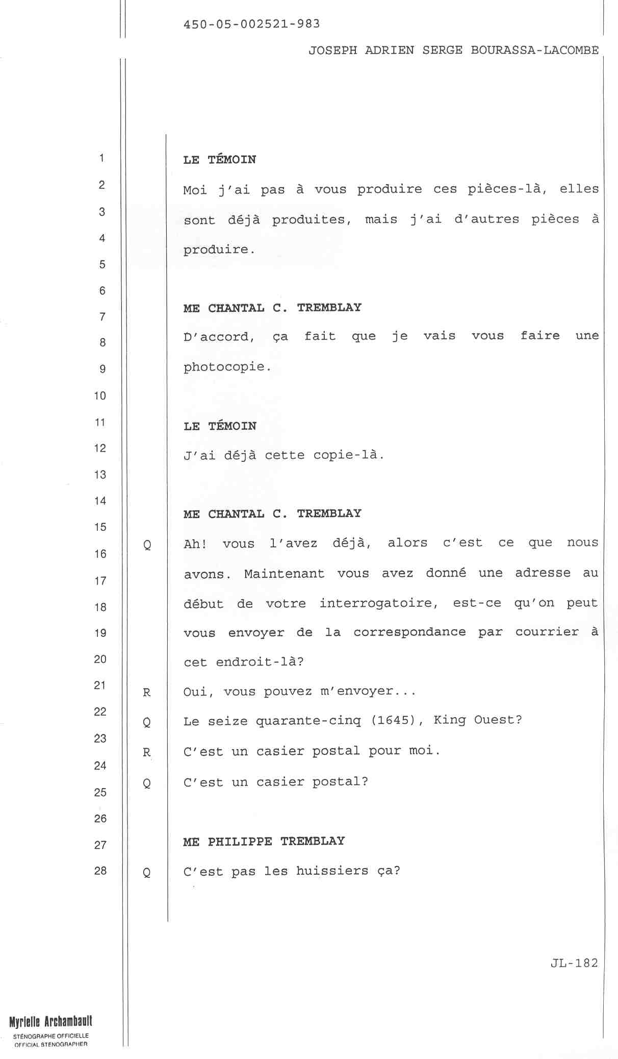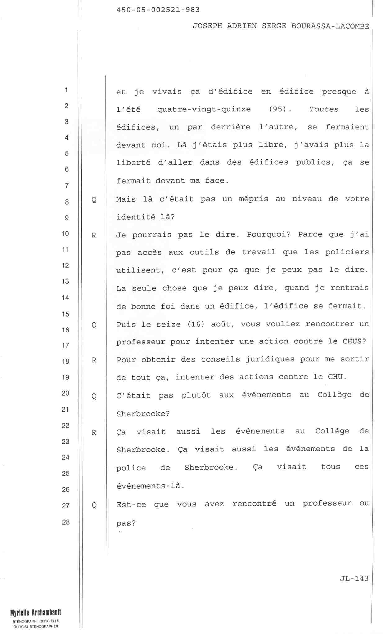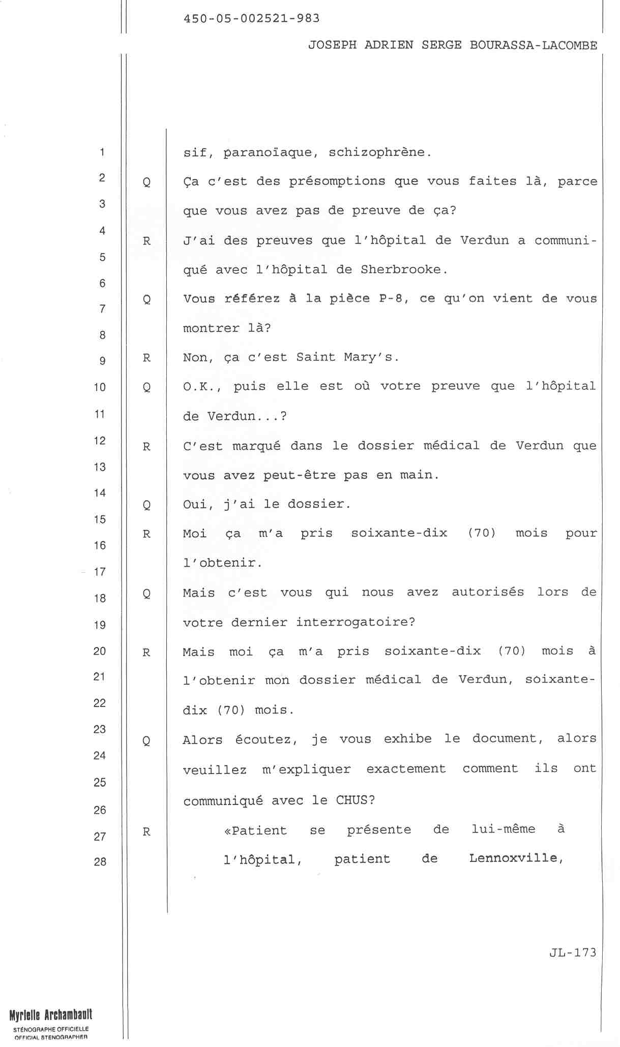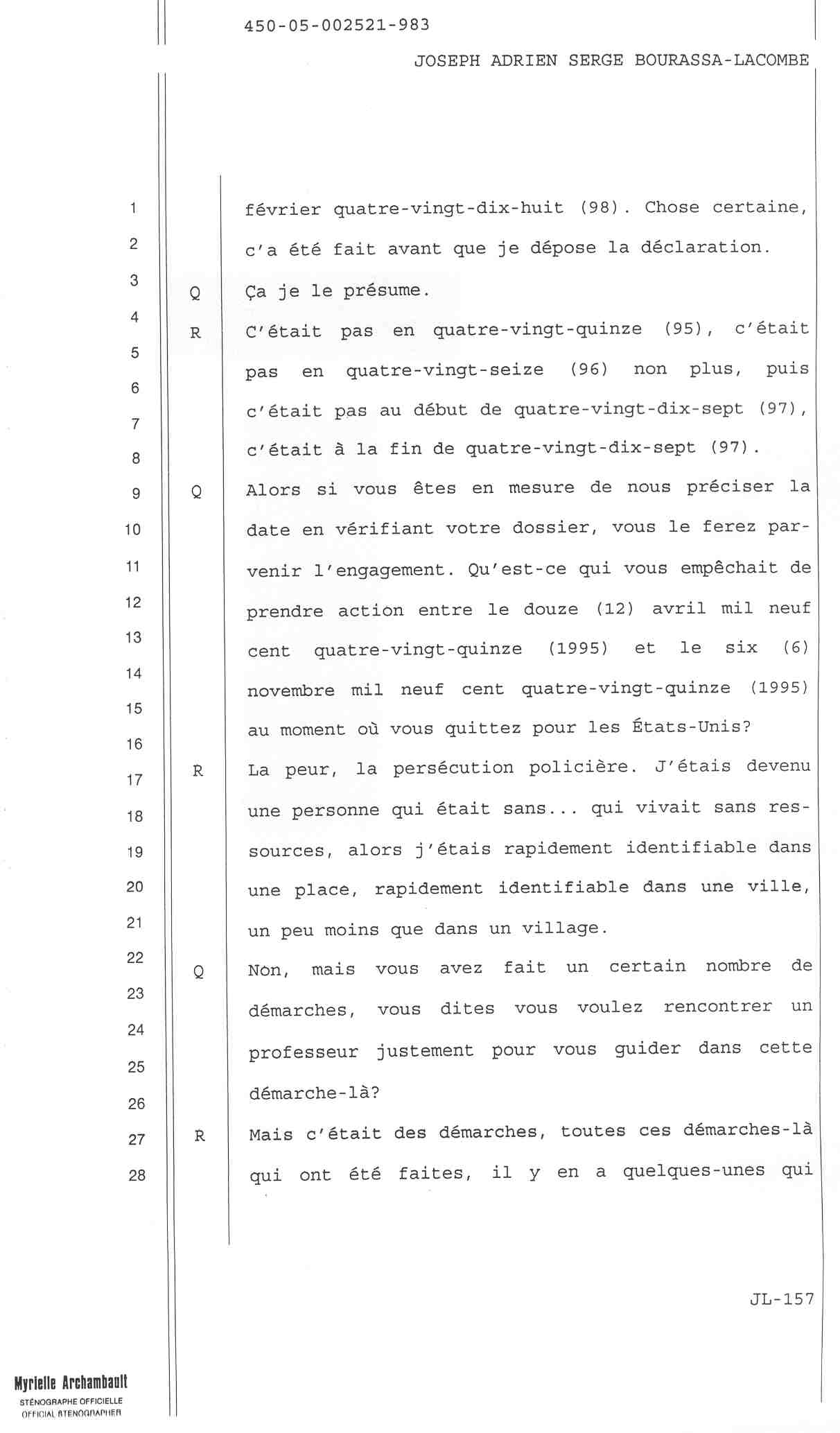 EN MEMORIA DEL 04 DE JULIO DE 1996 CUANDO VIVÍA EN E Y A LA BÚSQUEDA DE MI PROPIA COMIDA, EFECTUÉ UNA ENTREGA ESPECIAL AL XXVIE CONGRESO INTERNACIONAL DE DERECHO Y SALUD MENTAL QUE ESTO SE DESENROLLA EN MONTREAL DEL 4 AL 6 DE JULIO DE 2001 A LA ATENCIÓN DEL DR. ANDRÉ LAFLEUR, DG DEL INSTITUTO PHILIPPE PINEL DE MONTREAL. DEPOSITÉ COMO OFRENDA, 800 TARJETAS DE ASUNTOS DE LA FUNDACIÓN SARGA BOURASSA-LACOMBE SEAN UNA TARJETA PARA CADA MIEMBRO DEL CONGRESO ESPERADO A ESTE CONGRESO, 1 KILOGRAMO DE RED DE PLACA DESCOMPUESTA Y 3 PEDAZOS DE TARTA DE LOS ÁNGELES PARA QUE EL DR. LAFLEUR UNO DE LOS ORGANIZADORES DEL ACONTECIMIENTO INCLUYA QUE TENDRÍA MEJOR VALUE EN NOMBRE DE LOS DERECHOS HUMANOS Y DE LA SALUD MENTAL INVITAR LA FUNDACIÓN SARGA BOURASSA-LACOMBE PARA QUE LOS MIEMBROS DEL CONGRESO PUEDAN BENEFICIARSE DEL PERITAJE ESPECIALIZADO EN SALUD MENTAL DE SU PRESIDENTE CON EL FIN DE VER UNA DISMINUCIÓN DE LA CRIMINALIDAD, REPETICIÓN CRIMINAL Y SUICIDIO PARA CONSTRUIR UN MEJOR PAÍS. ES NECESARIO QUE SEPAN QUE ESTA MISIÓN SERÁ IMPOSIBLE, MIENTRAS ÉL UN REPENTANCE NO HUBO A MI LUGAR EN LOS EXPEDIENTES MÉDICOS DE: CENTRO HOSPITALARIO UNIVERSITARIO DE SHERBROOKE, DEL CENTRO HOSPITALARIO DE VERDUN, DEL CENTRO HOSPITALARIO DE ST. MARY Y DEL INSTITUTO PHILIPPE PINEL DE MONTREAL.. POR ESO PARA HABER MULTIPLICADO LAS ACCIONES CRIMINALES DIRIGIDAS CONTRA MI PERSONA ACTUANDO SIN JUICIO DEL TRIBUNAL, DE TENERME DEJAR VIVIR SIN REFUGIO Y SIN COMIDA DURANTE MÁS DE TRES AÑOS.