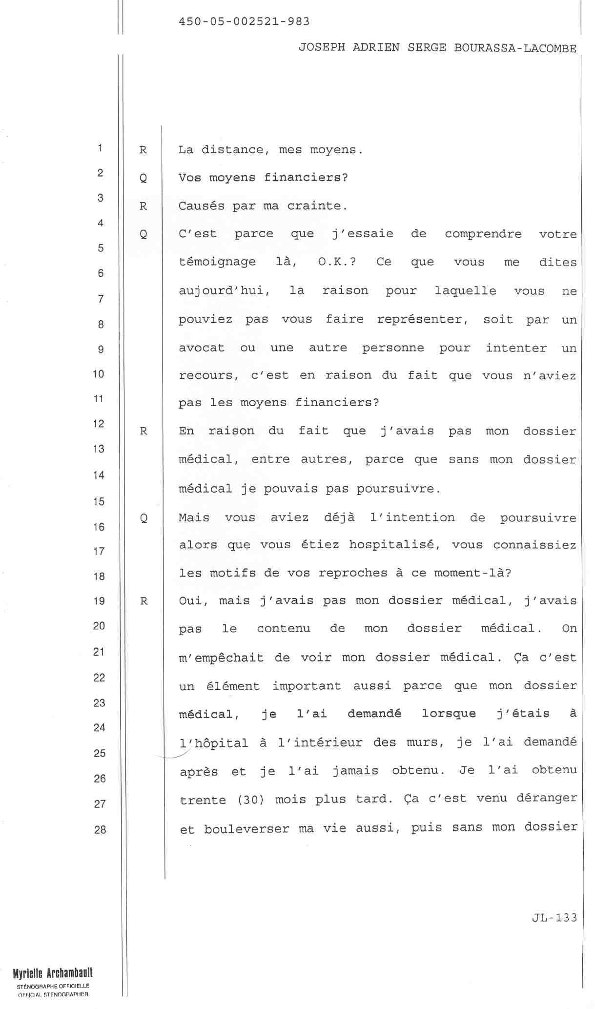 IN MEMORY OF JULY 04, 1996 WHEN I LIVED IN EXILE AND SEARCHING FOR MY FOOD, I CARRIED OUT A SPECIAL DELIVERY IN THE XXVITH INTERNATIONAL CONGRESS ON LAW AND MENTAL HEALTH WHO WAS HELD IN MONTREAL FROM JULY 4 TO 6, 2001 TO THE ATTENTION OF DR. PAUL-ANDRE LAFLEUR, DG OF THE INSTITUTE PHILIPPE PINEL OF MONTREAL. I GAVED AN OFFERING OF 800 BUSINESS CARDS OF SERGE BOURASSA-LACOMBE FOUNDATION, A CARD FOR EACH CONGRESSMAN, 1 KILO OF ROTTED FISH AND 3 PIECES OF ANGEL'S CAKE SO THAT DR. LAFLEUR ONE OF THE ORGANIZERS OF THE EVENT UNDERSTANDS THAT IT WOULD HAVE BEEN BETTER IN THE NAME OF THE HUMANS RIGHTS AND OF THE MENTAL HEALTH TO HAVE INVITED SERGE BOURASSA-LACOMBE'S FOUNDATION IN ORDER TO LET THOSE CONGRESSMEN PROFIT FROM THE SPECIALIZED EXPERTISE IN MENTAL HEALTH OF HIS PRESIDENT IN ORDER TO SEE A REDUCTION IN CRIMINALITY, RELAPSE CRIME AND SUICIDE, TO BUILD A BETTER COUNTRY. IT IS NECESSARY THAT YOU KNOW THAT THIS MISSION WILL BE IMPOSSIBLE, AS LONG AS THERE WILL BE NO REPENTANCE MADE TO ME IN THE MEDICAL FILES OF : THE UNIVERSITY HOSPITAL COMPLEX OF SHERBROOKE, HOSPITAL COMPLEX OF VERDUN, HOSPITAL COMPLEX OF ST MARY AND THE PHILIPPE PINEL INSTITUTE OF MONTREAL. ALSO FOR HAVING MULTIPLIED THE CRIMINAL ACTIONS DIRECTED AGAINST MY PERSON WHILE ACTING WITHOUT JUDGMENT OF COURT, TO HAVE TO LET ME LIVE WITHOUT SHELTER AND FOOD DURING MORE THAN THREE YEARS.
